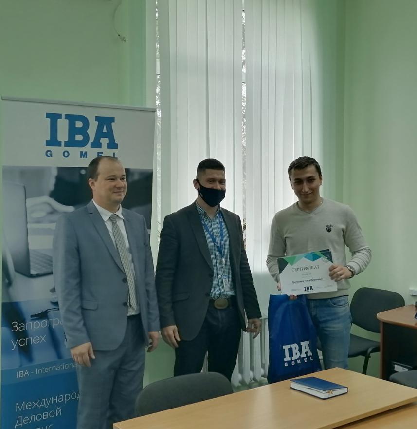 Представитель IT-компании – менеджер по развитию персонала Кирилл Жестянников вручил студентам памятные подарки и сертификаты от компании «ИВА-Гомель-Парк». Полученные сертификаты дают первоочередное право на трудоустройство в компанию. Кирилл Жестянников также рассказал студентам о работе в «ИВА-Гомель-Парк», возможностях стажировки студентов IT-специальностей в компании.