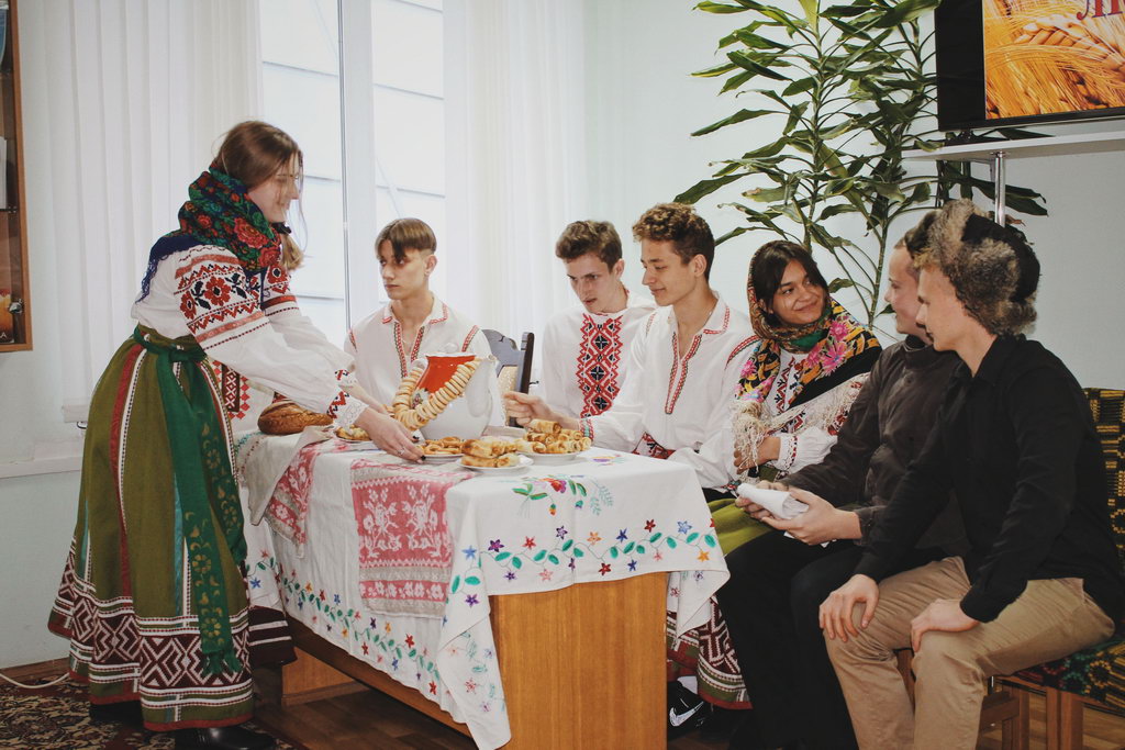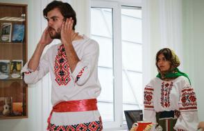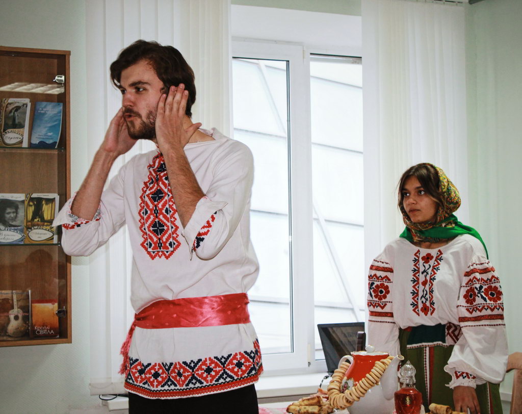 У чытальнай зале Славянскай бібліятэкі адбылося сапраўднае вяселле – фальклорнае мерапрыемства з цыклу “Абрады славянскага люду”. Арганізатарам і кіраўніком гэтага свайго роду свята выступілі выкладчыкі і студэнты філалагічнага  факультэта ГДУ імя Ф. Скарыны: доктар філалагічных навук прафесар кафедры рускай і сусветнай літаратуры Валянціна Новак, кандыдат філалагічных навук дацэнт кафедры беларускай мовы Святлана Вяргеенка і студэнтка 3 курса Аляксандра Дрывайла. Непасрэднымі ўдзельнікамі абраду сталі студэнты геолага-геаграфічнага і філалагічнага факультэтаў Гомельскага дзяржуніверсітэта.