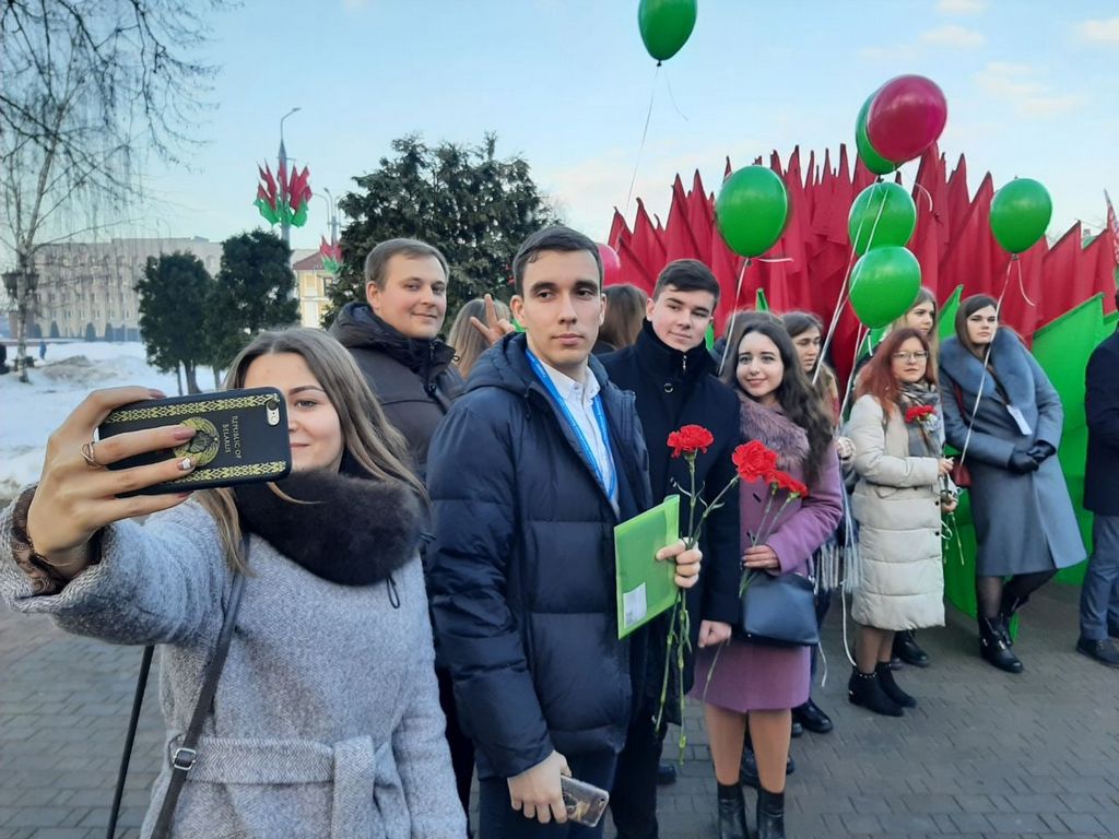 Гомельский государственный университет на республиканском празднике представляют четверо студентов: Мария Юркова (биологический факультет), Дмитрий Дрейзин (факультет математики и ТП), Иван Ризевский (геолого-географический факультет) и Яна Бондаренко (факультет психологии и педагогики). Все ребята – активные участники общественной и научной жизни университета.