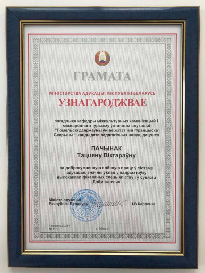 дарственный университет им. Ф. Скорины представляла Починок Татьяна Викторовна, заведующий кафедрой межкультурных коммуникаций и международного туризма.