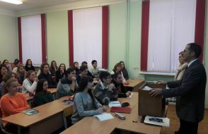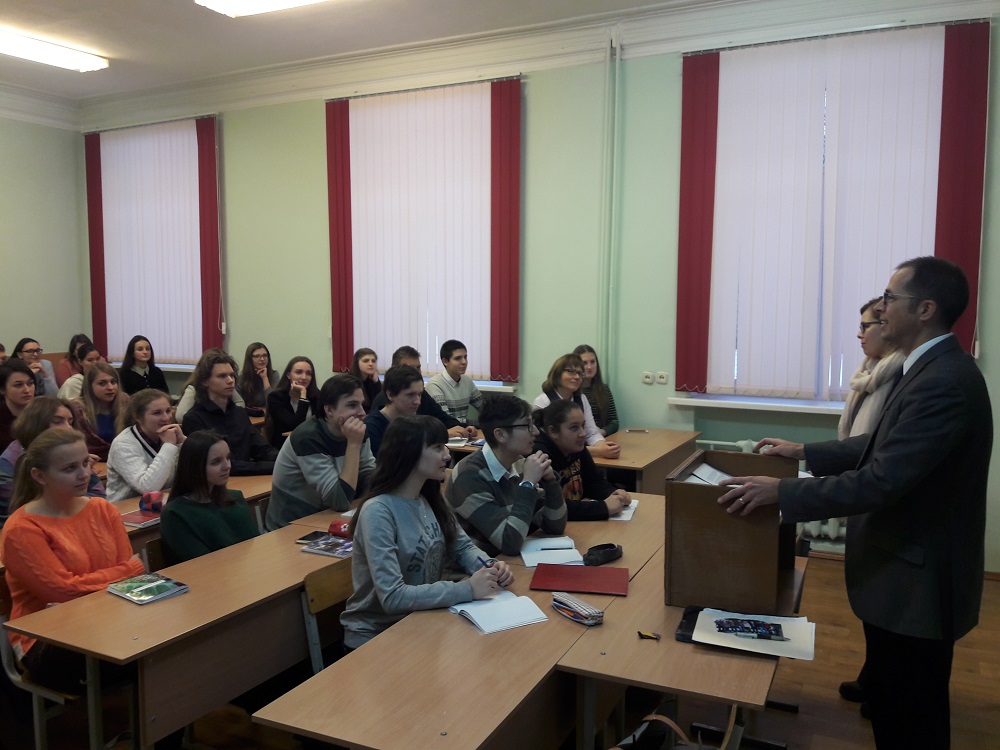 19 декабря на историческом факультете состоялась лекция доктора наук Брюса Андерсона, представлявшего Middlesex University (Лондон). Он также является основателем и президентом Института Реформации в г. Саффолк (США). Сфера научных интересов господина Андерсона включает историю Великого Княжества Литовского. Перед студентами исторического факультета он выступил с лекцией «История возникновения и развития университета в Европе».