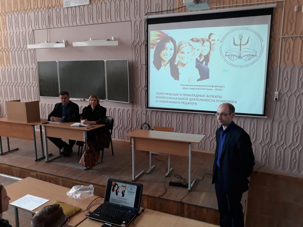 26 апреля в учреждении образования «Гомельский государственный университет имени Франциска Скорины» прошла вузовская студенческая научная конференция «Дни студенческой науки-2018». Теоретические и прикладные аспекты профессиональной деятельности психолога и социального педагога были обсуждены в ходе пленарного заседания конференции на факультете психологии и педагогики. В мероприятии приняли участие студенты, магистранты, аспиранты. Доклады вызвали живой интерес и жаркую дискуссию. Примечательным стало то, что в этом году в рамках конференции состоялась презентация Центра профессионального и карьерного консультирования. Цель деятельности Центра профессионального и карьерного консультирования — обеспечить эффективность функционирования системы профессионального и карьерного консультирования учащихся и выпускников университетов, которая обеспечит развитие профессиональной и карьерной самоидентификации выпускников и представление их профессиональных компетенций работодателям на рынке труда Республики Беларусь.