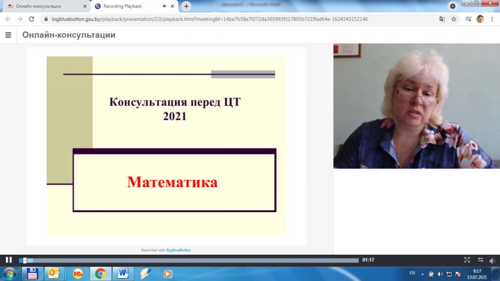 Начиная с 2017 года, традиционными университетскими мероприятиями для абитуриентов перед ЦТ стали онлайн-консультации по учебным предметам. В текущем году онлайн-консультации были организованы преподавателями университета по 8 предметам: белорусский язык, русский язык, английский язык, математика, физика, биология, химия, история Беларуси. Основной площадкой для проведения консультаций являлась бинарная дистанционная система обучения университета «НовыйТьютор» (ntutor.gsu.by, конференции + тесты). Доступ к системе «НовыйТьютор» для дополнительной подготовки к экзамену получили все абитуриенты, которые записывались на централизованное тестирование в стенах ГГУ.