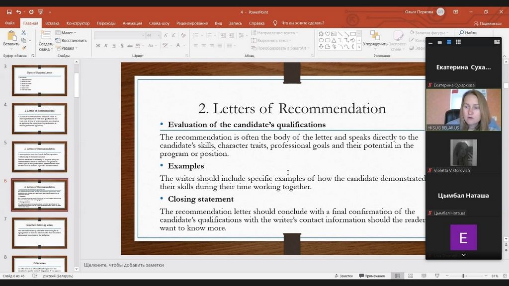 Обучение было очень полезным: полученные знания можно применять не только в бизнес-сфере, но и в повседневной жизни. Нас учили как правильно составлять резюме и сопроводительное письмо, и это только малая часть того, что мы узнали. Две недели практики английского языка были прекрасной разминкой перед новым учебным годом.