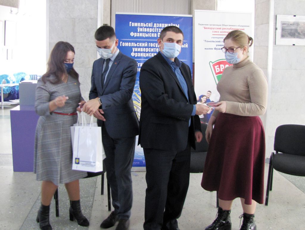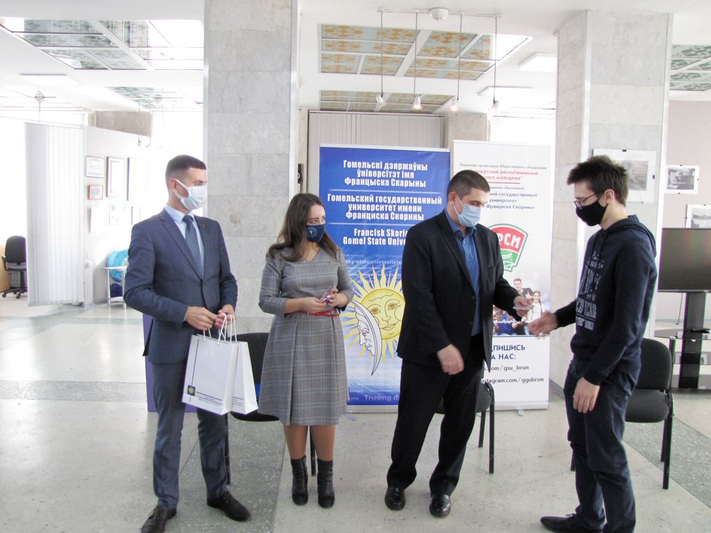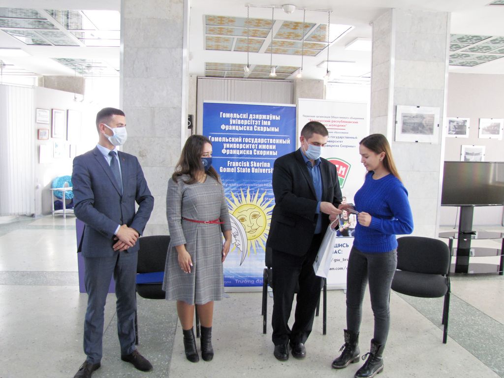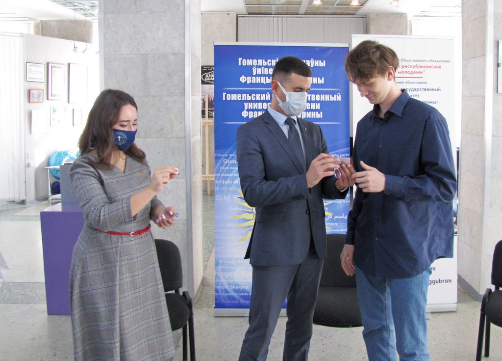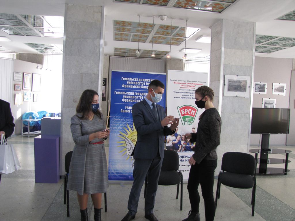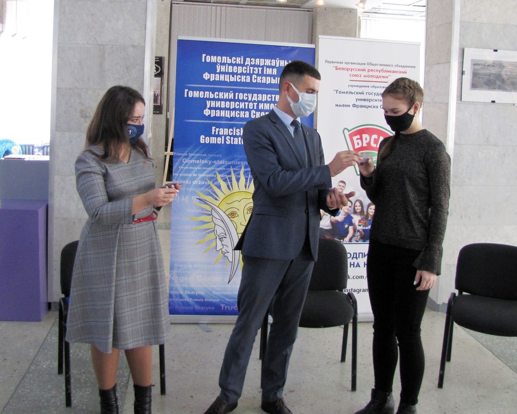В выставочном зале ГГУ имени Франциска Скорины в торжественной обстановке состоялось вручение билетов ОО «БРСМ» студентам нашего университета, занимающим активную гражданскую позицию и принимающим участие в общественно-культурной жизни вуза.