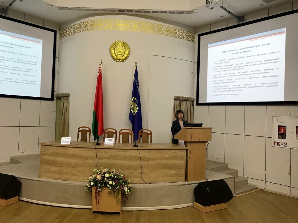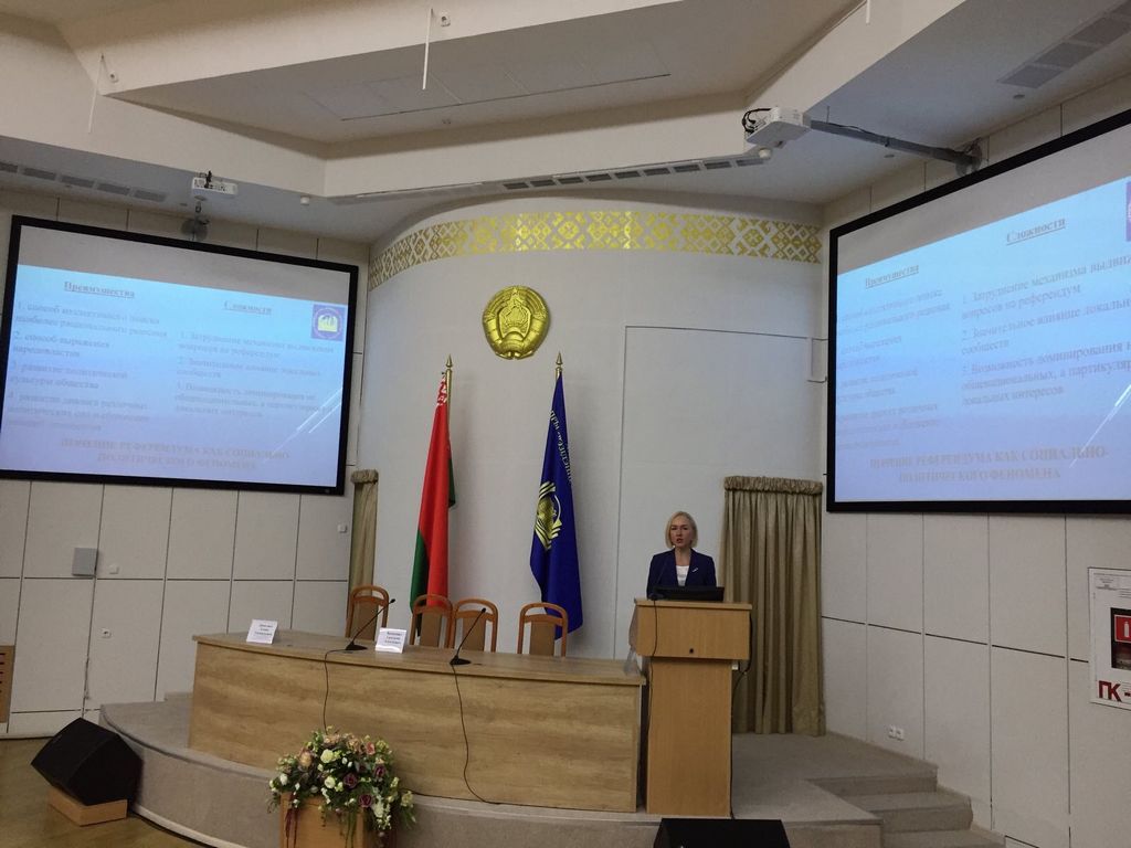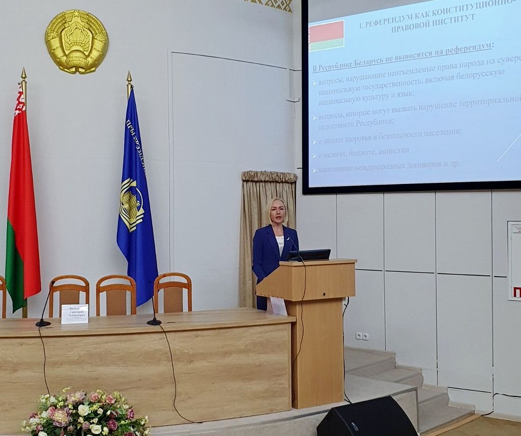 – Дашкевич Елена Геннадьевна, заместитель директора Института управленческих кадров, кандидат исторических наук, доцент представила исторические аспекты Республиканского референдума 1996 г. и этапы становления белорусской государственности;