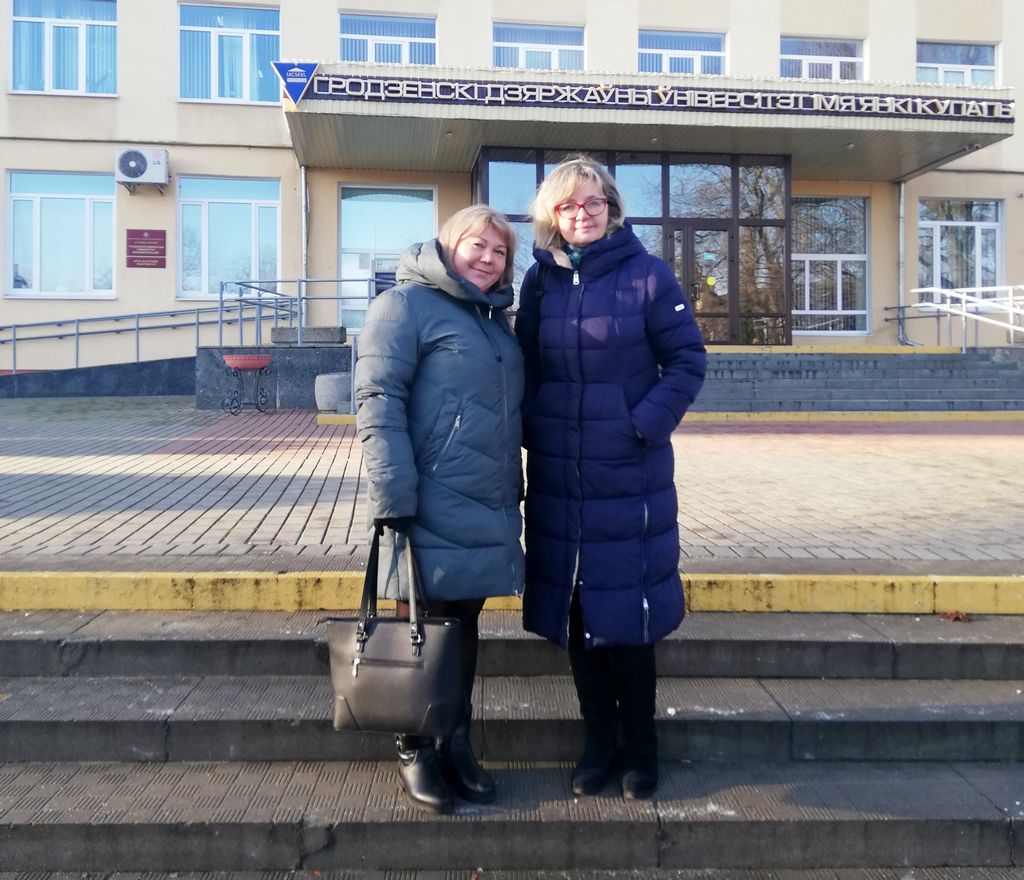 С 29 ноября по 3 ноября старшие преподаватели кафедры межкультурных коммуникаций и международного туризма Е.А. Чернякова и В.Ю. Соболевич проходили стажировку в ИПКиПК учреждения образования «Гродненский государственный университет имени Янки Купалы» на базе кафедры перевода и межкультурной коммуникации факультета истории, коммуникации и туризма. Целью стажировки было ознакомление с нормативно-правовыми и научно-методическими аспектами организации образовательных программ для студентов специальности «Лингвистическое обеспечение межкультурных коммуникаций (международный туризм)». В задачи стажировки входило изучение опыта научно-методической работы и учебно-методических разработок для дисциплин специальности кафедры.