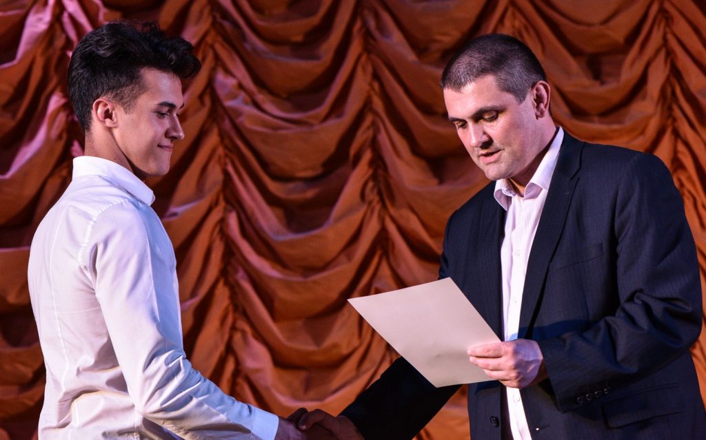 Торжественная часть мероприятия была посвящена вручению грамот и благодарностей. Проректор по воспитательной работе Юрий Никитюк и декан факультета физики и ИТ Дмитрий Коваленко отметили студентов, которые достигли высоких результатов в учебной, научно-исследовательской, культурно-творческой, общественной и спортивной деятельности.