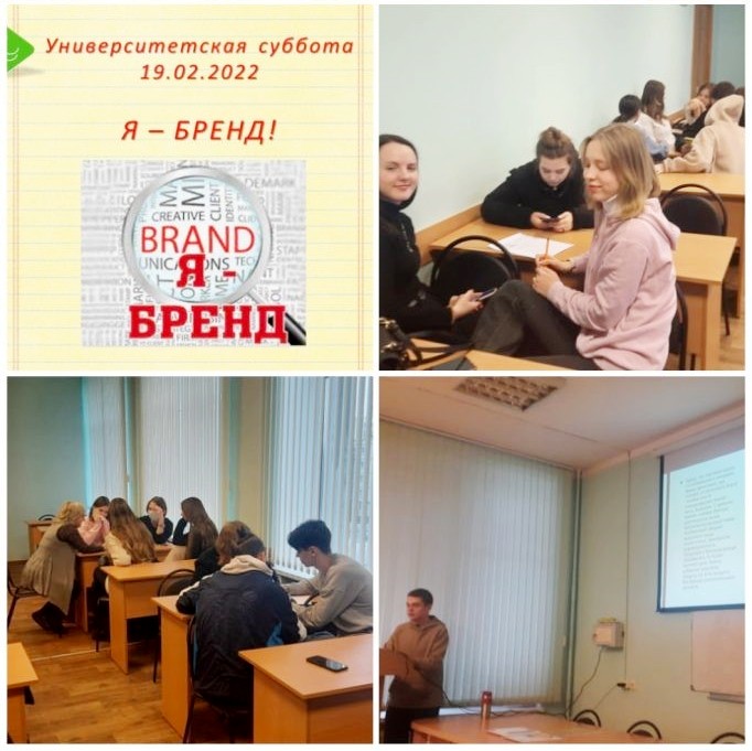19 февраля состоялась университетская суббота экономического факультета на тему «Создай успешный бренд». Мероприятие проводили доцент кафедры экономики и управления Анна Казущик и представители СНИЛ «Современный менеджмент и инновации» Алексей Павлов, Елизавета Комлевая, Дарья Черненко. Что такое бренд-менеджмент, стратегии позиционирования компаний в условиях информационной экономики, как грамотно строить концепцию личного бренда в социальных сетях, формировать собственный контент-план – об этом ребятам рассказали организаторы мероприятия.