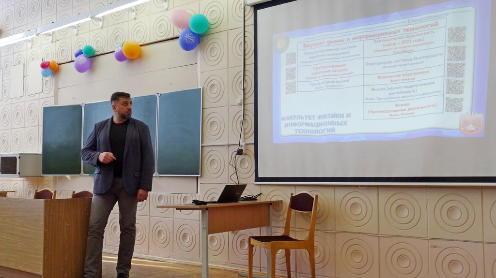 Открыл мероприятие декан факультета физики и информационных технологий Дмитрий Коваленко. Он провел небольшую лекцию-презентацию «IT-факультет». Школьники получили представление о факультете физики и ИТ, и связях факультета с IT-компаниями – потенциальными работодателями. О деятельности Гомельского филиала Компьютерной Академии ШАГ рассказали Ольга Стельмашок, руководитель учебного отдела академии и Владислав Терешенков, преподаватель Frontend академии ШАГ, Senior Frontend Developer компании SENLA. Спикеры подчеркнули важность взаимодействия образовательных центров с университетами для формирования продуктивного профессионального пути молодого IT-специалиста.