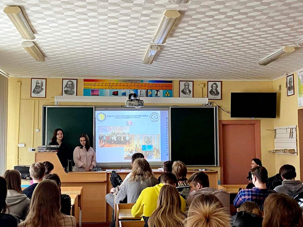 Учащиеся гимназии узнали, по каким предметам необходимо сдать централизованное тестирование для поступления на специальности факультета и на данную специальность, а также ознакомились с образовательными мероприятиями кафедры межкультурных коммуникаций и международного туризма, проведенными в рамках международного сотрудничества с университетами-партнерами.