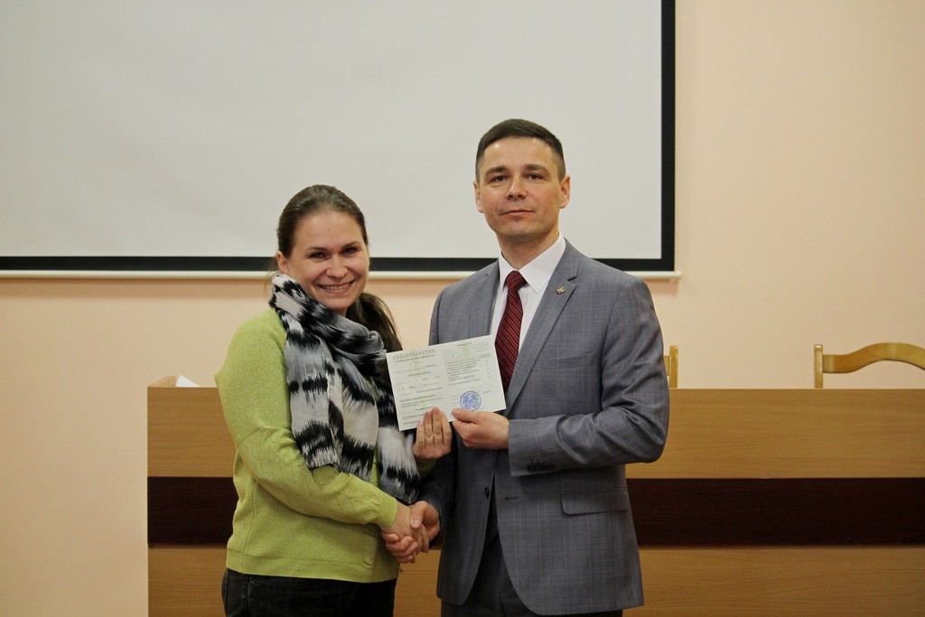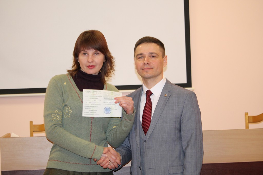 P.S. Директор учреждения «Гомельский областной центр народного творчества» Наталья Дмитриевна Сафранович в рамках торжественного вручения свидетельств об окончании программы повышения квалификации, обобщив мнение слушателей, отметила хорошую организацию образовательного процесса в университете, комфортные условия обучения, профессионализм профессорско-преподавательского состава, современное информационное обеспечение процесса обучения, доброжелательное и внимательное отношение к слушателям.