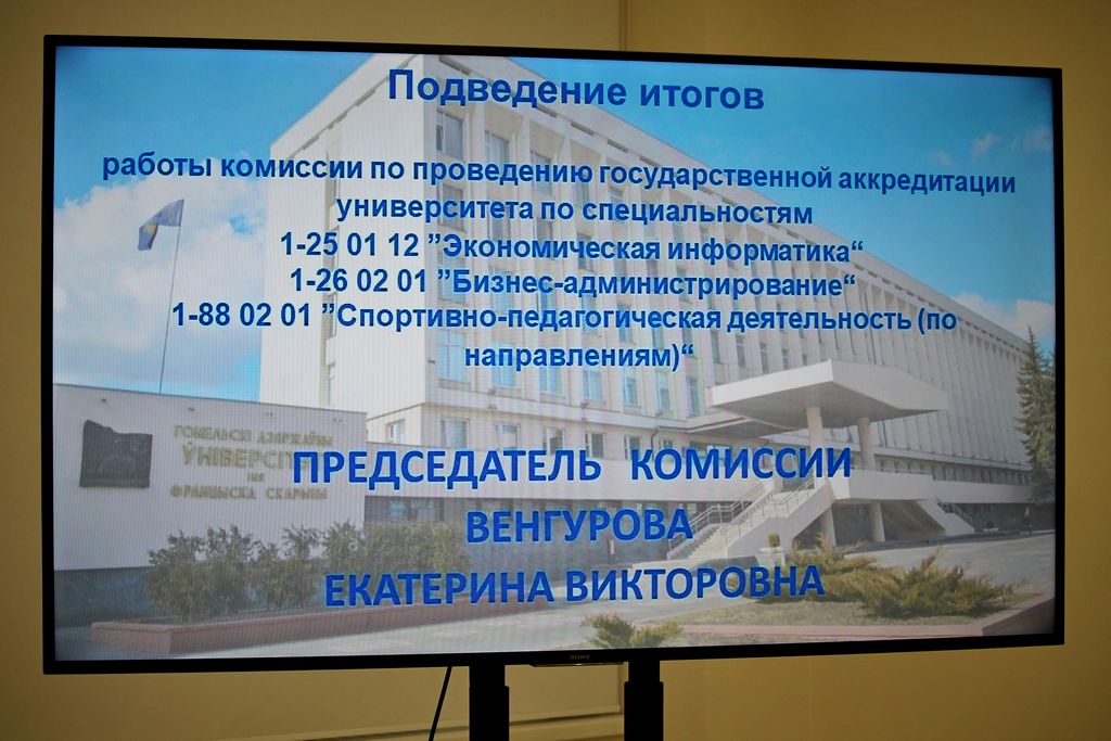 Все члены комиссии рекомендовали Департаменту контроля качества образования аккредитовать специальности высшего образования I ступени: 1-25 01 12 «Экономическая информатика», 1-26 02 01 «Бизнес-администрирование», 1-88 02 01 «Спортивно-педагогическая деятельность (по направлениям)».
