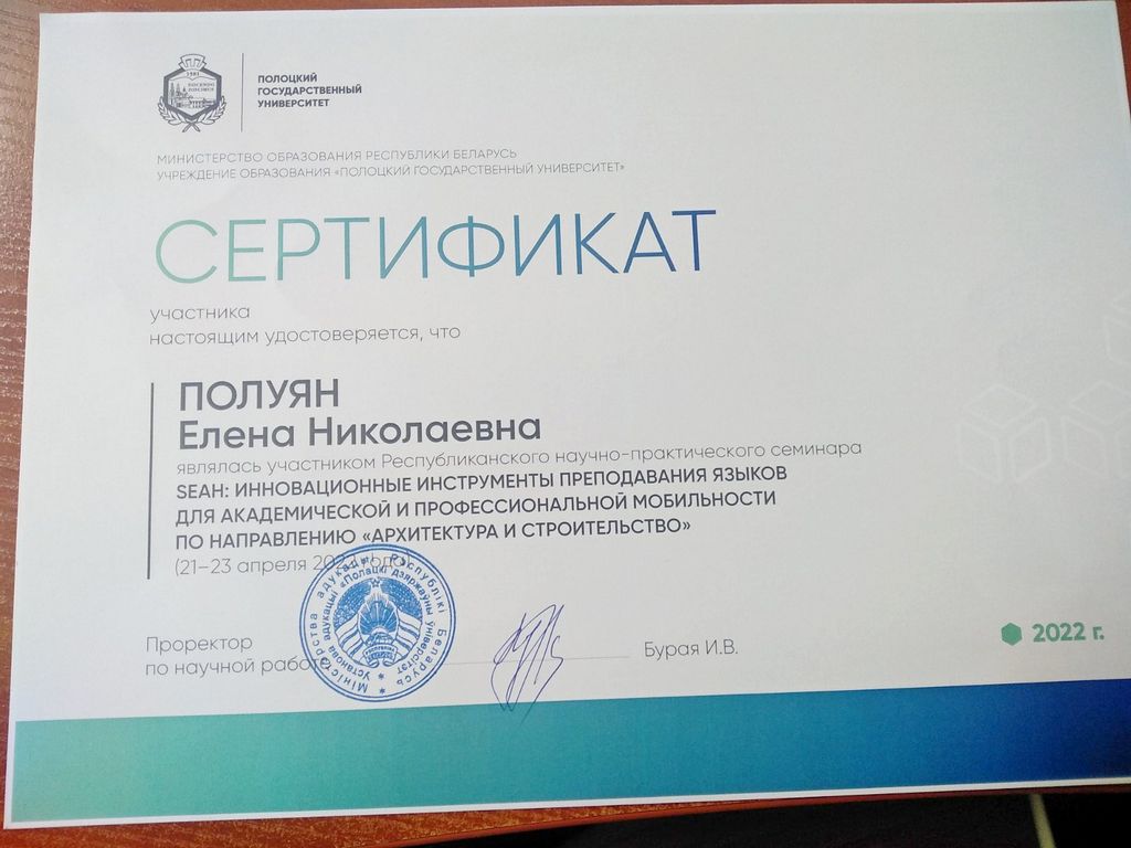21–23 апреля в Полоцком государственном университете проходил Республиканский научно-практический семинар «SEAH: инновационные инструменты преподавания языков для академической и профессиональной мобильности по направлению «Архитектура и строительство», в котором приняли участие декан филологического факультета ГГУ имени Ф. Скорины Е.Н. Полуян и доцент кафедры русской и мировой литературы Е.А. Кастрица.