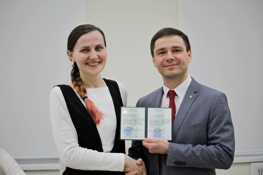 Вручение дипломов о переподготовке слушателям-выпускникам прошло в торжественной обстановке в конференц-зале университета. Открыл церемонию директор Института дополнительного образования Дмитрий Ходанович, который рассказал об основных тенденциях развития Института и, в частности, системы дополнительного образования взрослых, пожелал выпускникам никогда не останавливаться на достигнутом, развиваться и совершенствоваться в профессиональной деятельности, дальнейших успехов и интересной работы.