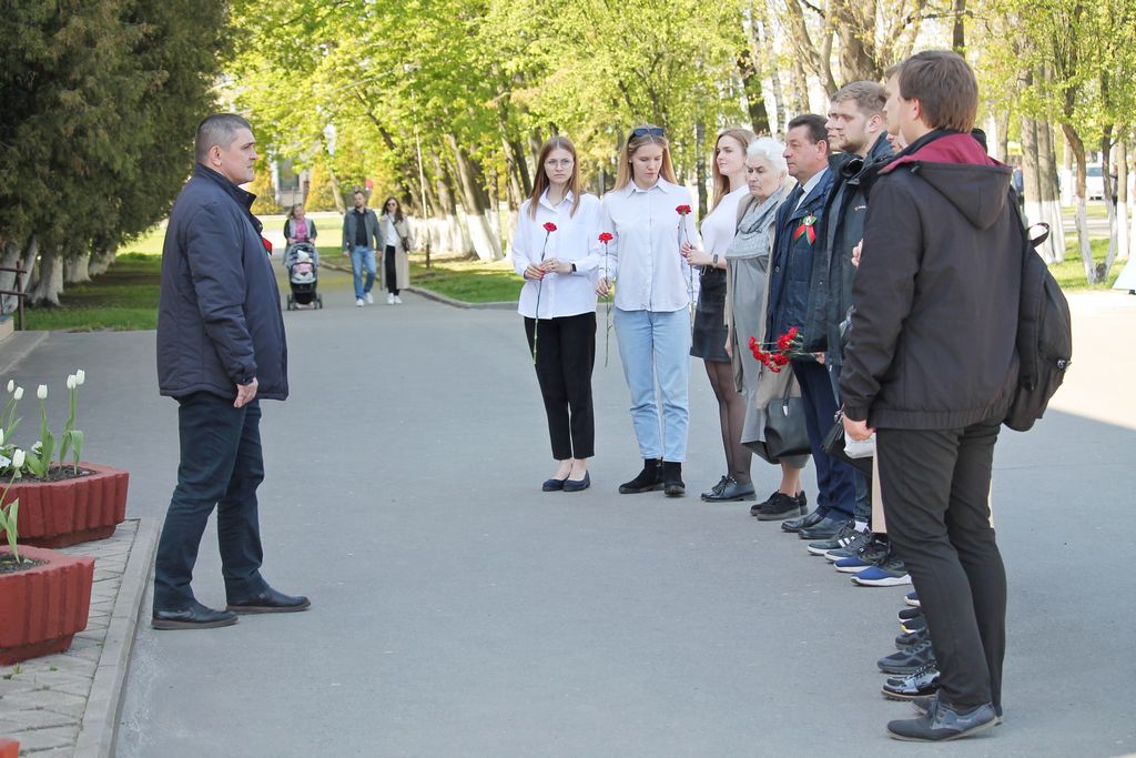 Студенты нашего вуза не оставили без внимания мемориальные доски академиков, почетных профессоров университета, участников Великой Отечественной войны Владимира Васильевича Аниченко, Ивана Федоровича Харламова и Михаила Афанасьевича Дмитриева.