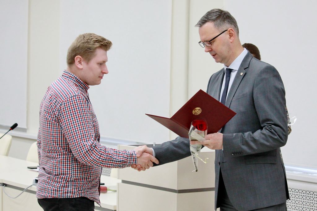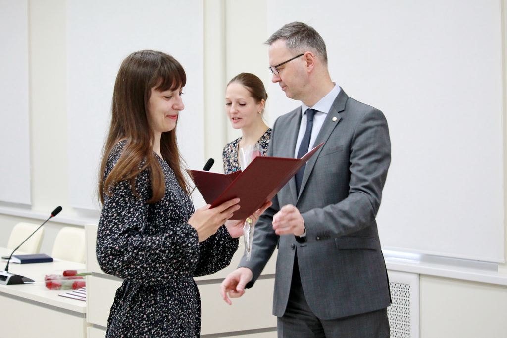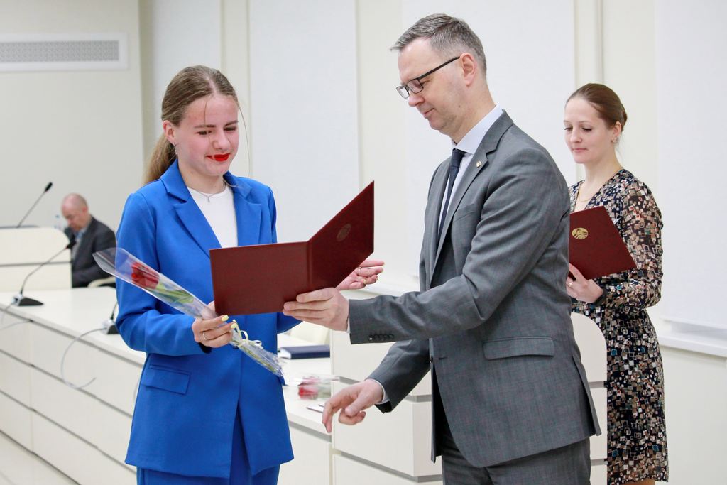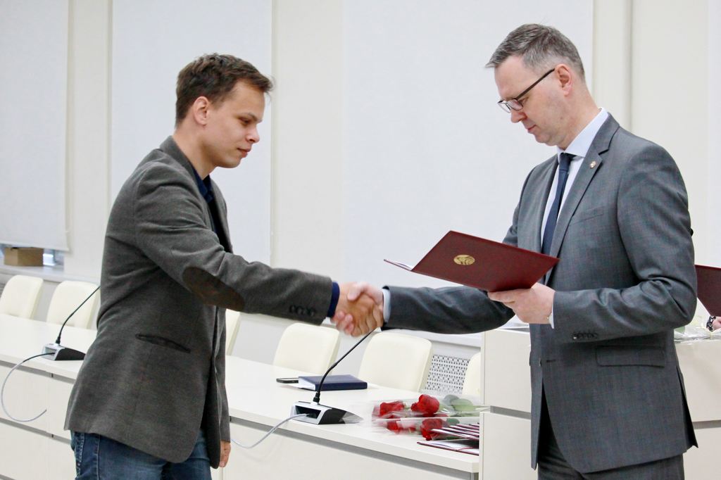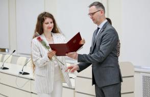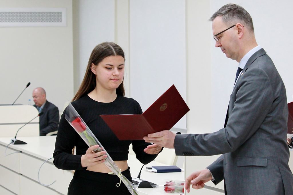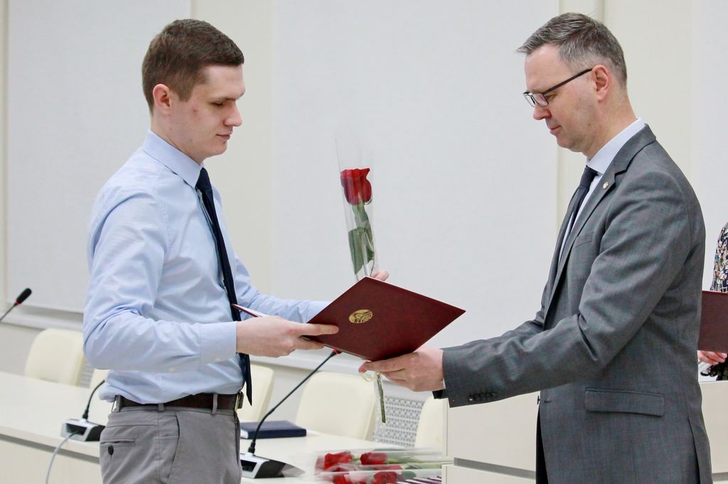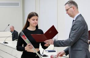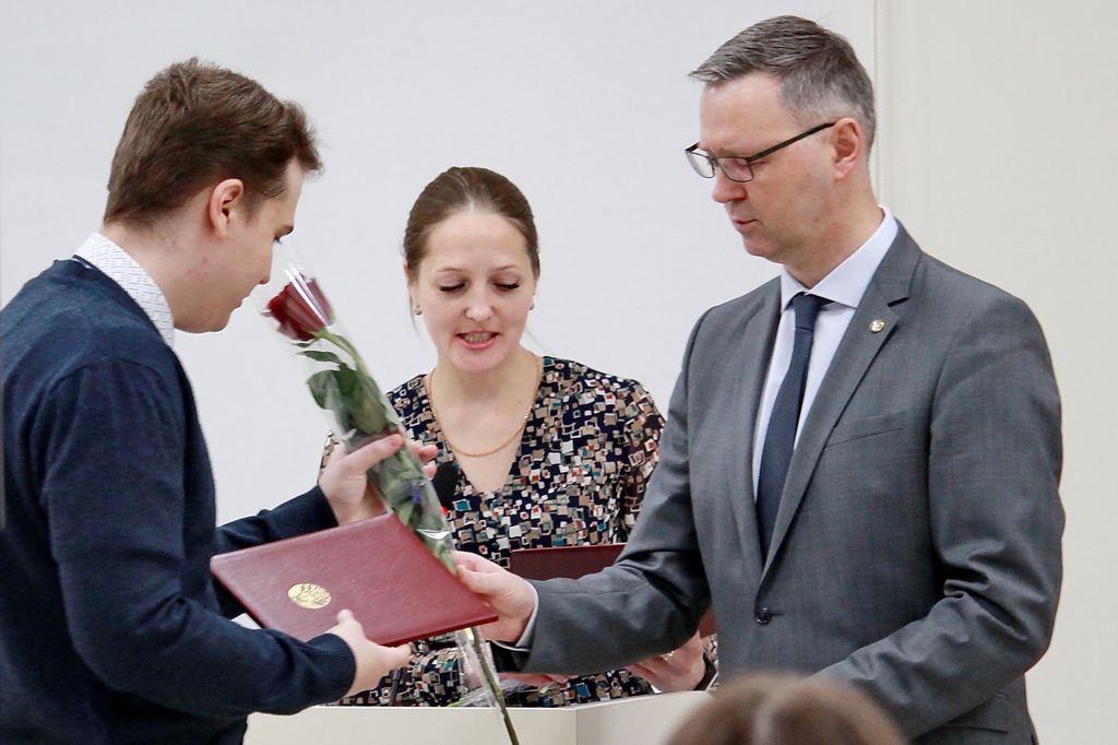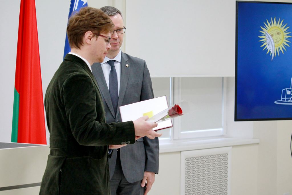 Сегодня ректор ГГУ имени Франциска Скорины Сергей Хахомов в торжественной обстановке вручил свидетельства специального фонда Президента Республики Беларусь по социальной поддержке одаренных учащихся и студентов.