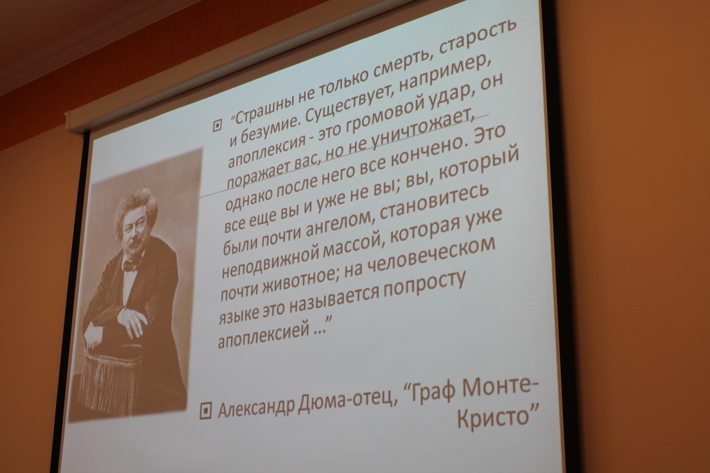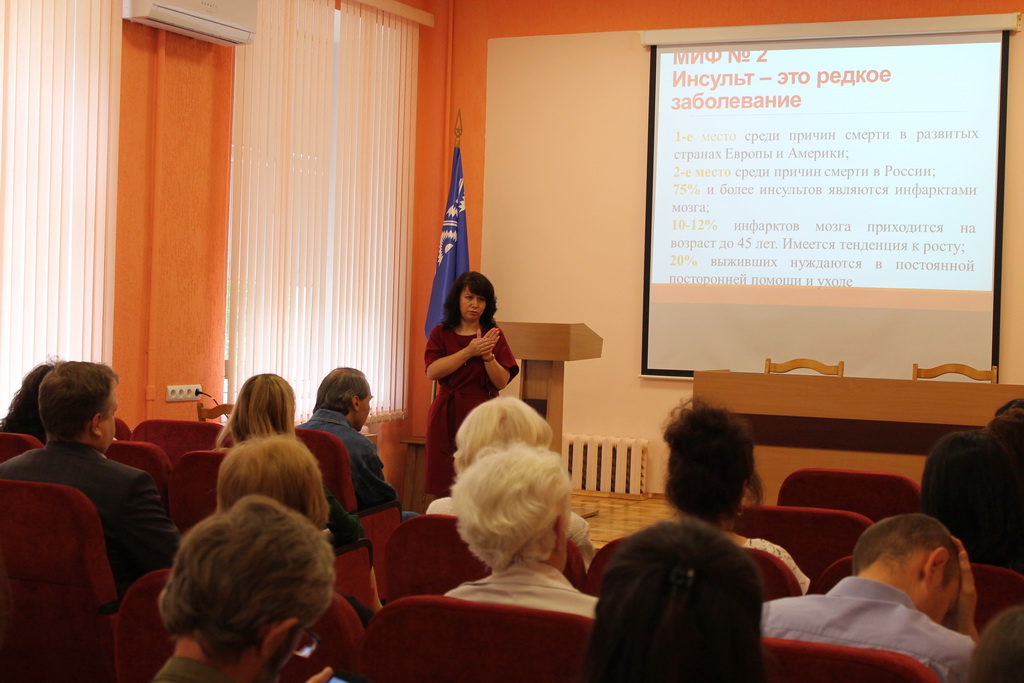 23 мая состоялась встреча трудового коллектива ГГУ с заведующим кафедрой неврологии и нейрохирургии Гомельского государственного медицинского университета Усовой Н.Н. Наталья Николаевна развеяла укоренившиеся в сознании людей мифы о страшном заболевании, дала рекомендации по профилактике и предотвращении инсультов, рассказала о том, как оказать первую помощь пострадавшим.