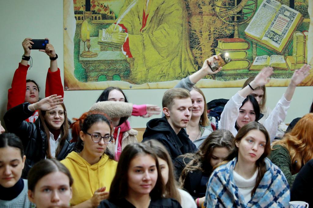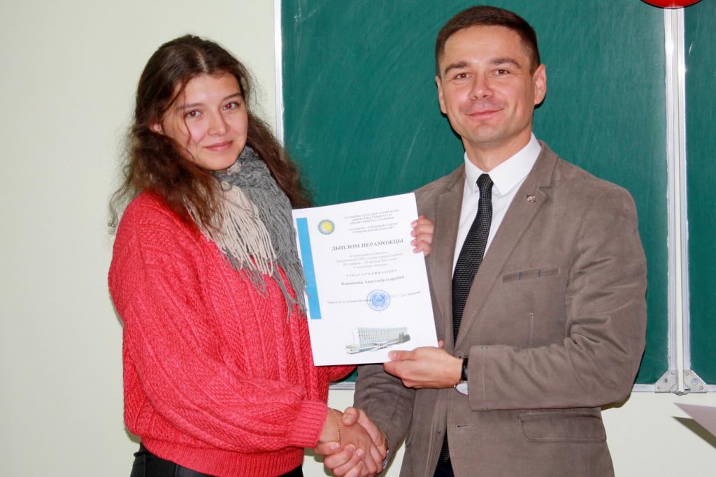 Мероприятие началось с награждения студентов филологического факультета, принявших участие в городском конкурсе авторской поэзии и прозы, посвященному 880-летию Гомеля. Грамоты вручены проректором по воспитательной работе Дмитрием Ходановичем и ответственным за воспитательную работу филологического факультета Еленой Кастрицей: лучшей в номинации «Проза» студентке группы РИ-31 Надежде Гайдук и лучшей в номинации «Поэзия» студентке группы РИ-31 Анастасии Копниновой.