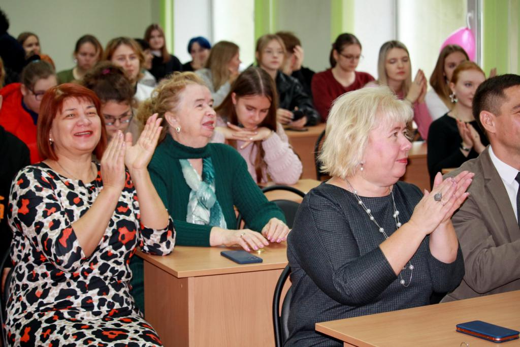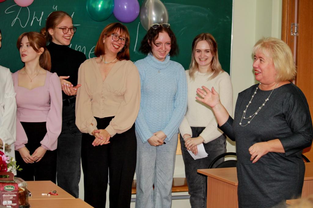 Присутствующие преподаватели услышали много теплых слов и добрых пожеланий в свой адрес, поучаствовали в занимательной игре «Угадай преподавателя и студента по детской фото», почувствовали себя учениками, отвечая на вопросы викторины из разных областей школьных знаний. Студенты группы РИ-31 продемонстрировали несколько юмористических сценок из жизни учителей. К поздравлениям студентов группы РИ-31 присоединились студенты группы БИА-11, исполнив песню «Мы любим вас, родные Ваши лица…», посвященную учителям.