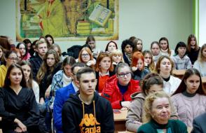 На филологическом факультете ГГУ имени Франциска Скорины студентами группы РИ-31 под руководством доцента кафедры белорусского языка Зои Шведовой было подготовлено и проведено мероприятие, посвященное Дню учителя. Студенты назвали его утренником, шуточно мотивируя, что утренник – это «то, что не вечером». В качестве зрителей были приглашены преподаватели и студенты факультета, проректор по воспитательной работе Дмитрий Ходанович.