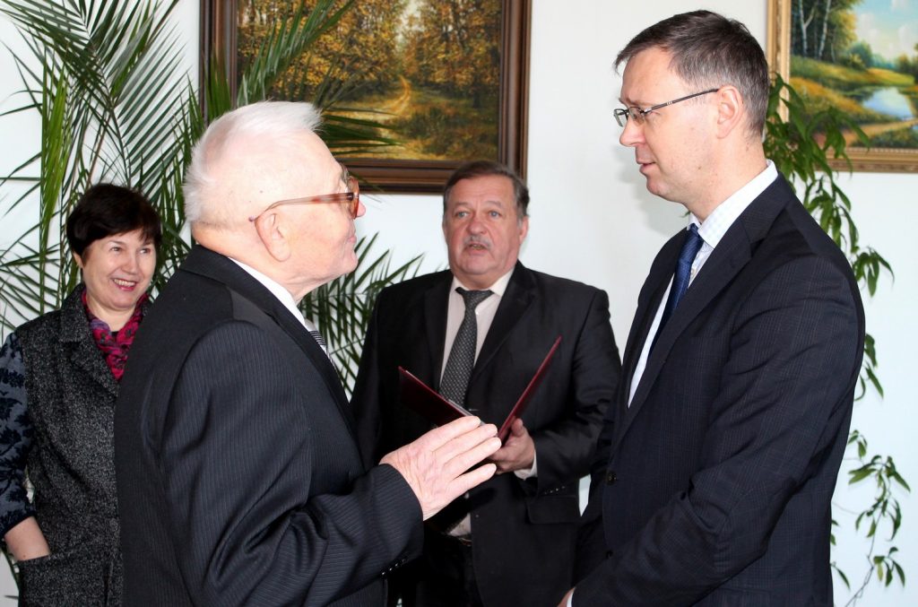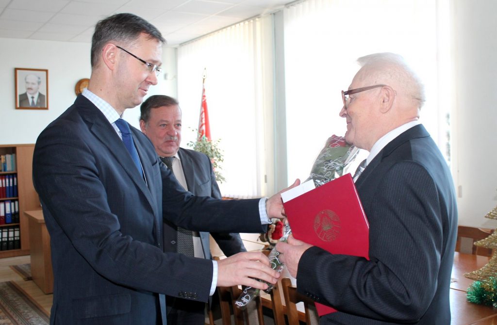 В торжественной, но в то же время теплой и дружественной обстановке его поздравили друзья, бывшие коллеги, представители ректората и профкома сотрудников ГГУ. В благодарность за преданность вузу и многолетний добросовестный труд юбиляру вручили Почетную грамоту университета.