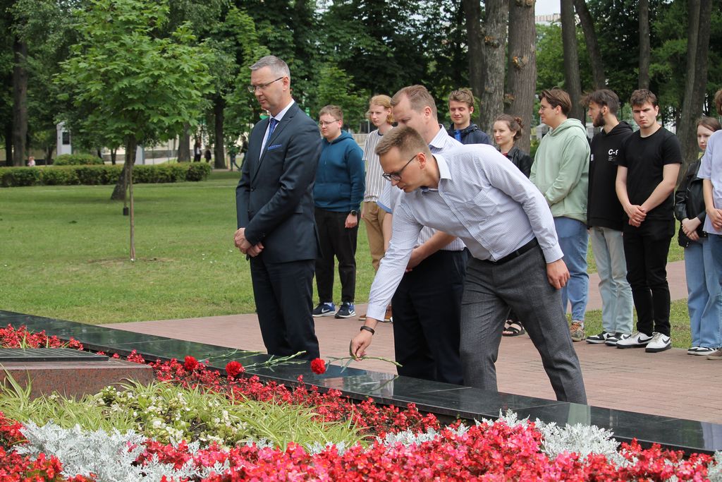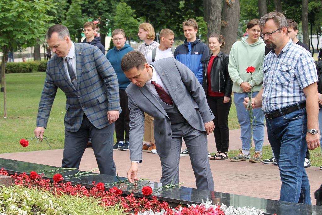 В преддверии важной даты представители нашего университета возложили венки и цветы к памятнику героям-подпольщикам в Студенческом сквере. Живые цветы и мемориальные венки, возложенные к мемориалу, – это символический знак нашей бесконечной благодарности погибшим при освобождении Родины от немецкой оккупации.