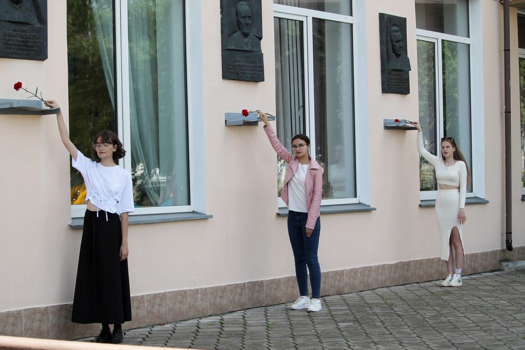 Студенты нашего вуза не оставили без внимания мемориальные доски, посвященные академикам, почетным профессорам университета, участникам Великой Отечественной войны Владимиру Васильевичу Аниченко, Ивану Федоровичу Харламову и Михаилу Афанасьевичу Дмитриеву.