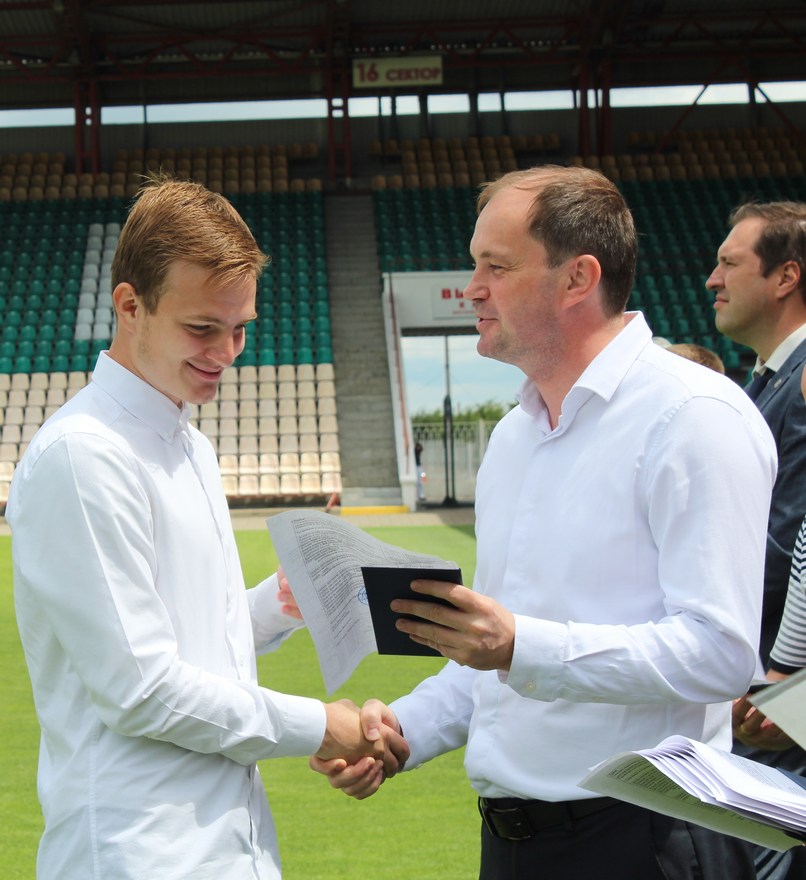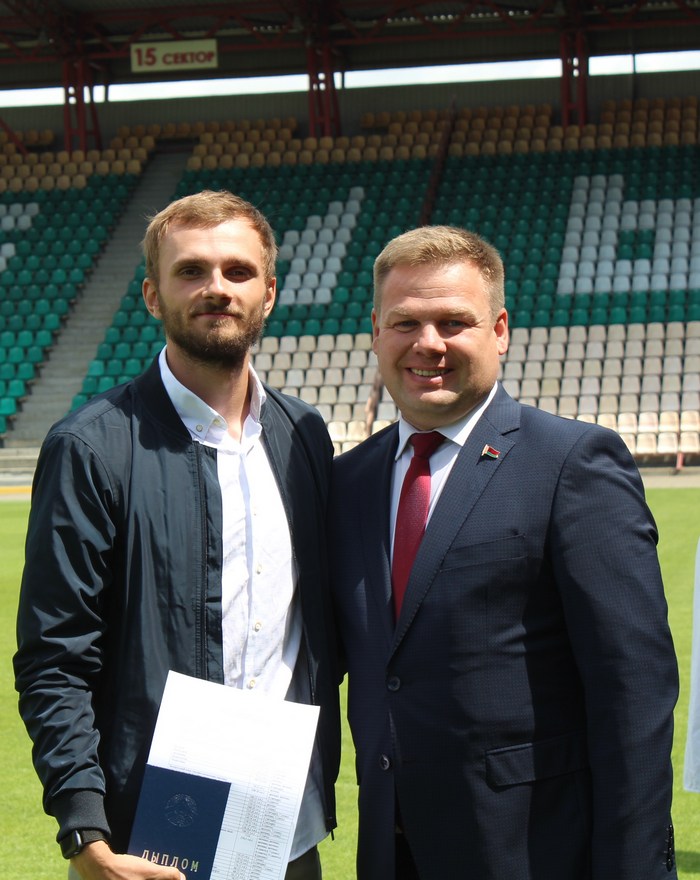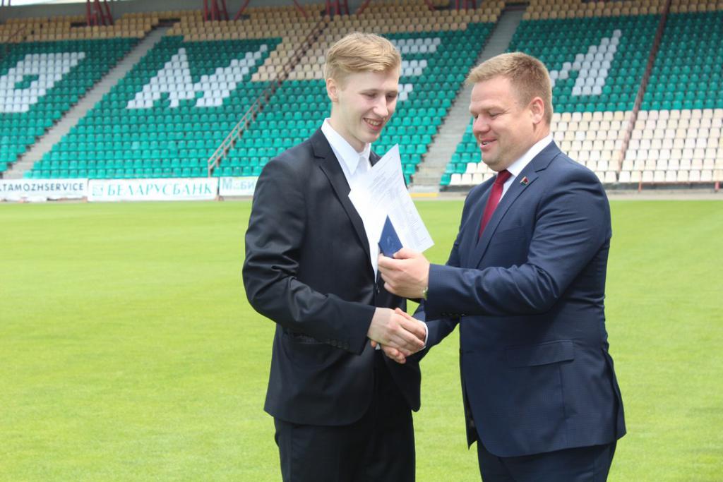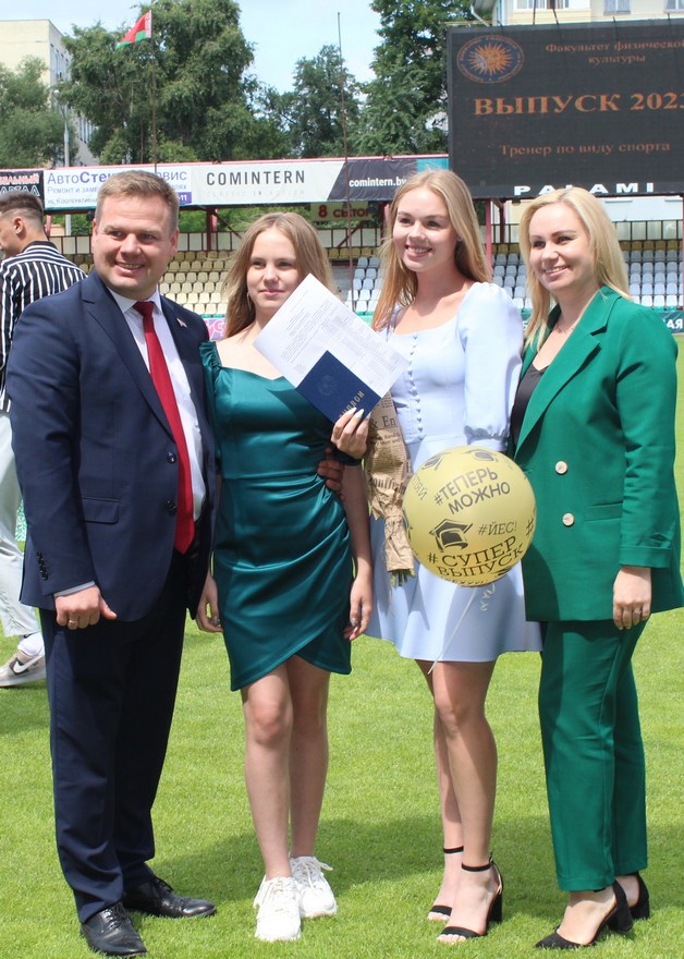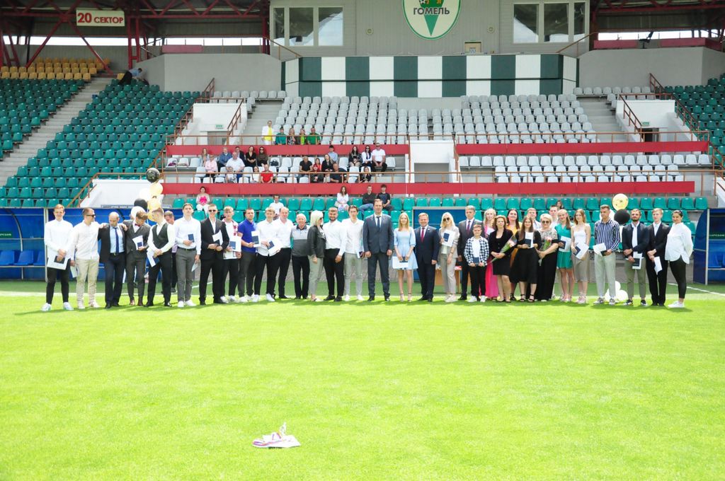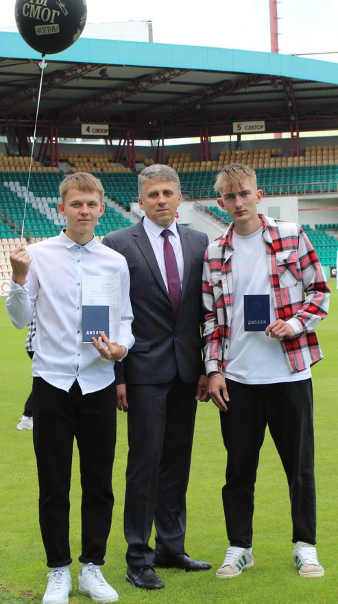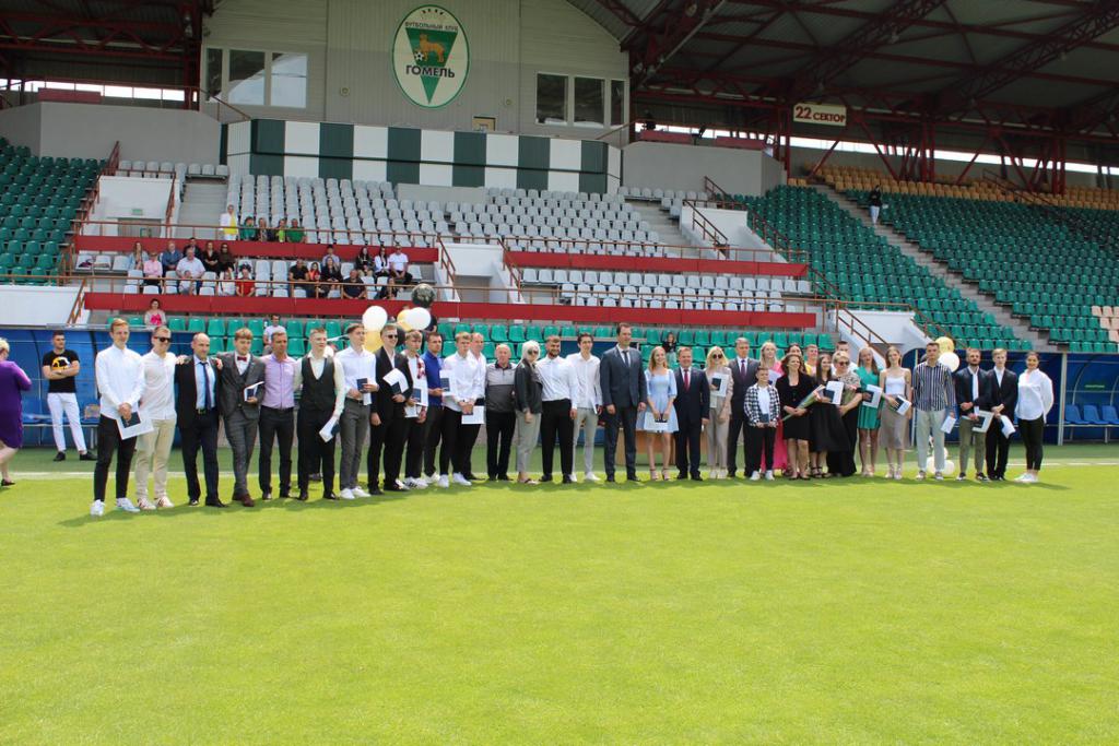 Дипломы нашим выпускникам вручали приглашенные на праздник гости: начальник управления спорта и туризма Гомельского облисполкома Павел Анатольевич Старосветский, глава администрации Центрального района Дмитрий Валентинович Лебедь, директор Гомельского областного центра олимпийского резерва по легкой атлетике Елена Дмитриевна Ерохина, а также руководство Футбольного клуба «Гомель»: директор Василий Андреевич Дроздов, спортивный директор Виктор Васильевич Борель и начальник команды Никита Станиславович Мартьянов.