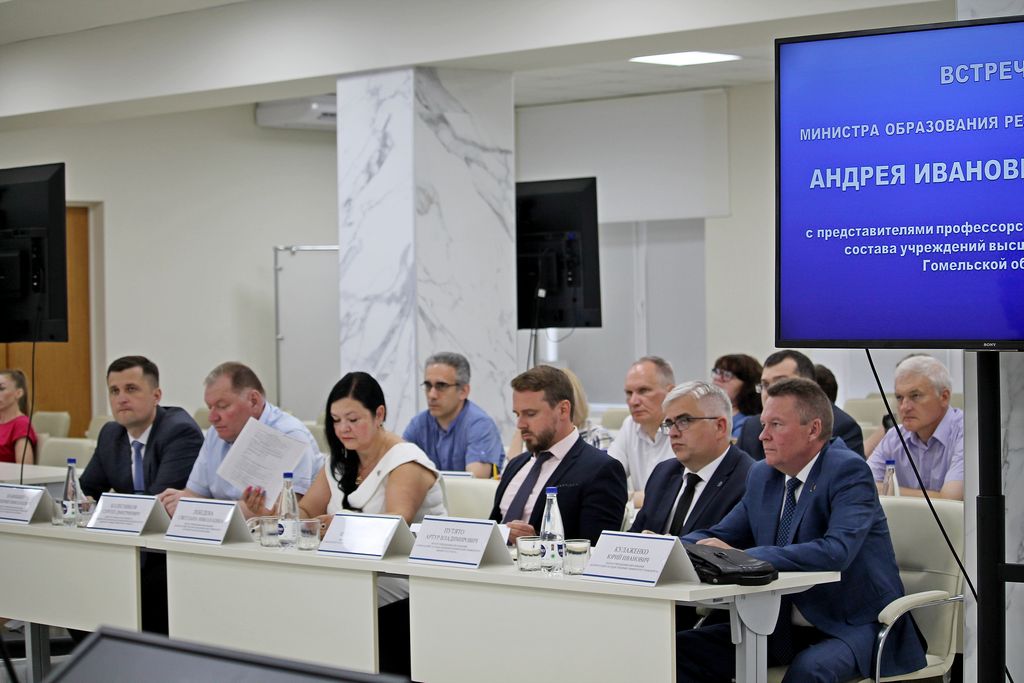 В рамках рабочего визита в Гомель ГГУ имени Франциска Скорины посетил Министр образования Республики Беларусь Андрей Иванец. Наш университет выступил площадкой для проведения встречи Андрея Ивановича с представителями учреждений высшего образования Гомельской области. Участники мероприятия обсудили актуальные вопросы в сфере высшего образования, одной из ключевых тем обсуждения стала текущая вступительная кампания, ее особенности и нововведения.