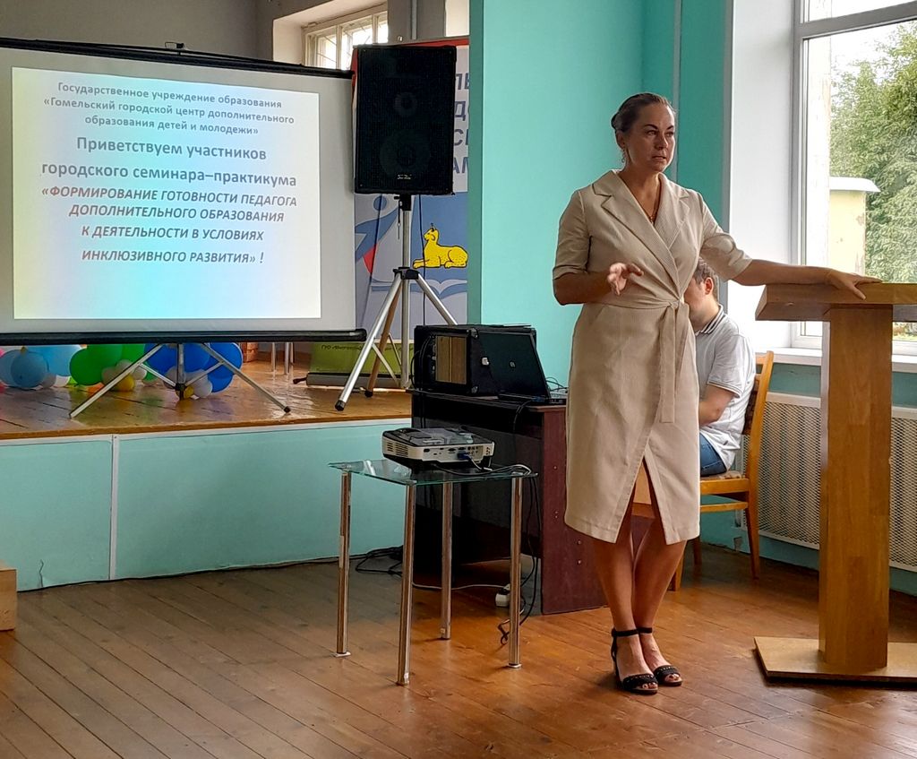 На базе государственного учреждения образования «Гомельский городской центр дополнительного образования детей и молодежи» состоялся городской семинар «Формирование готовности педагога дополнительного образования к деятельности в условиях инклюзивного развития». Мероприятие открыла директор учреждения Татьяна Вячеславовна Королькова.