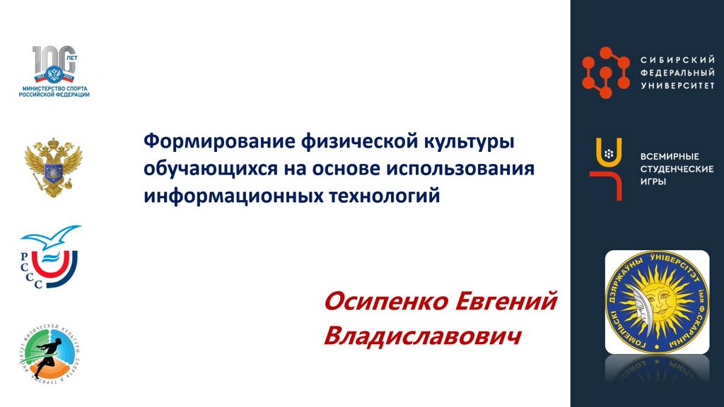 – Евгения Осипенко (к.п.н., доцента, заведующего кафедрой ТМФК УО «ГГУ имени Ф. Скорины», г. Гомель, Республика Беларусь). Он выступил с приветственным словом от факультета физической культуры и научным докладом – «Формирование физической культуры обучающихся на основе использования информационных технологий».