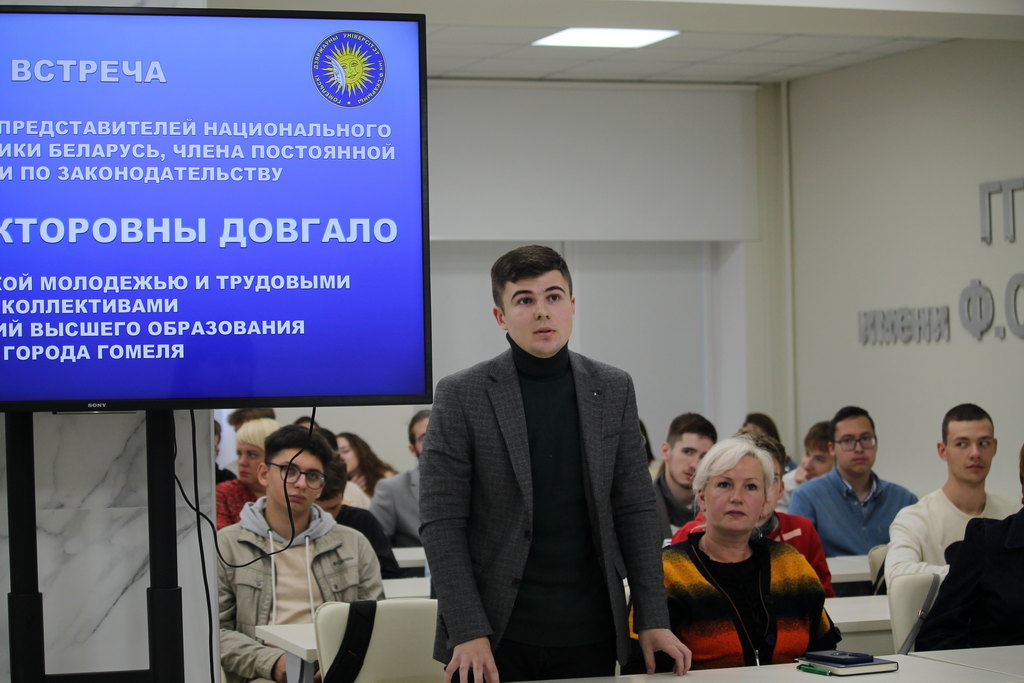 В ГГУ имени Ф. Скорины парламентарий Ирина Довгало встретилась с впервые голосующей студенческой молодежью Гомеля