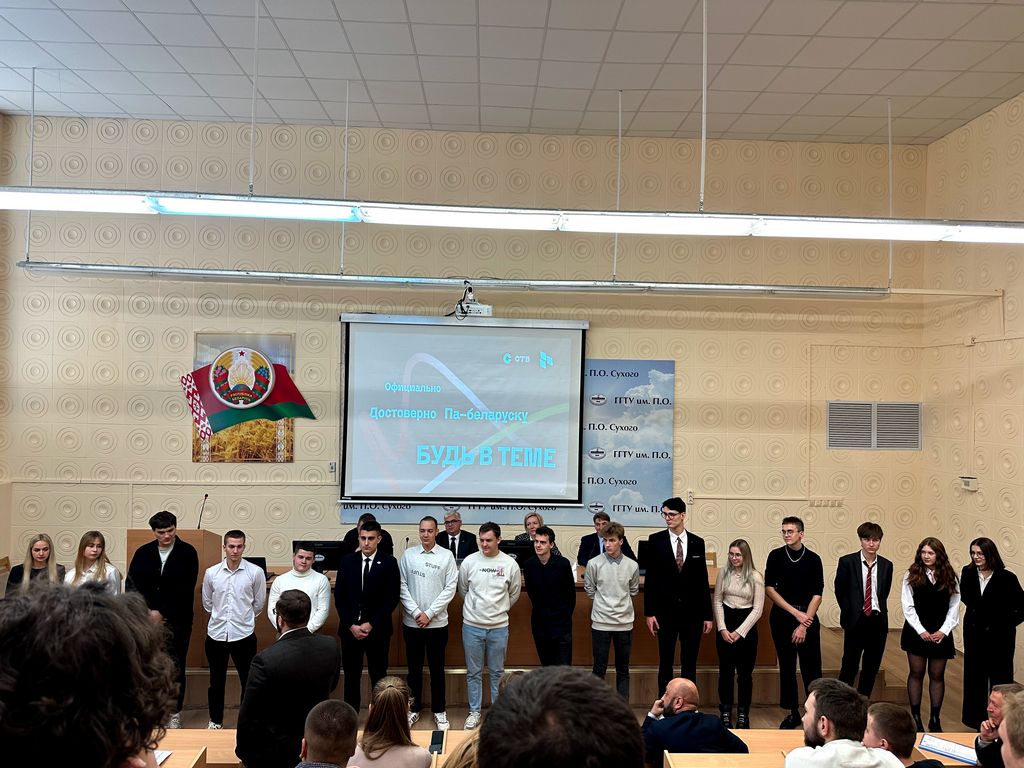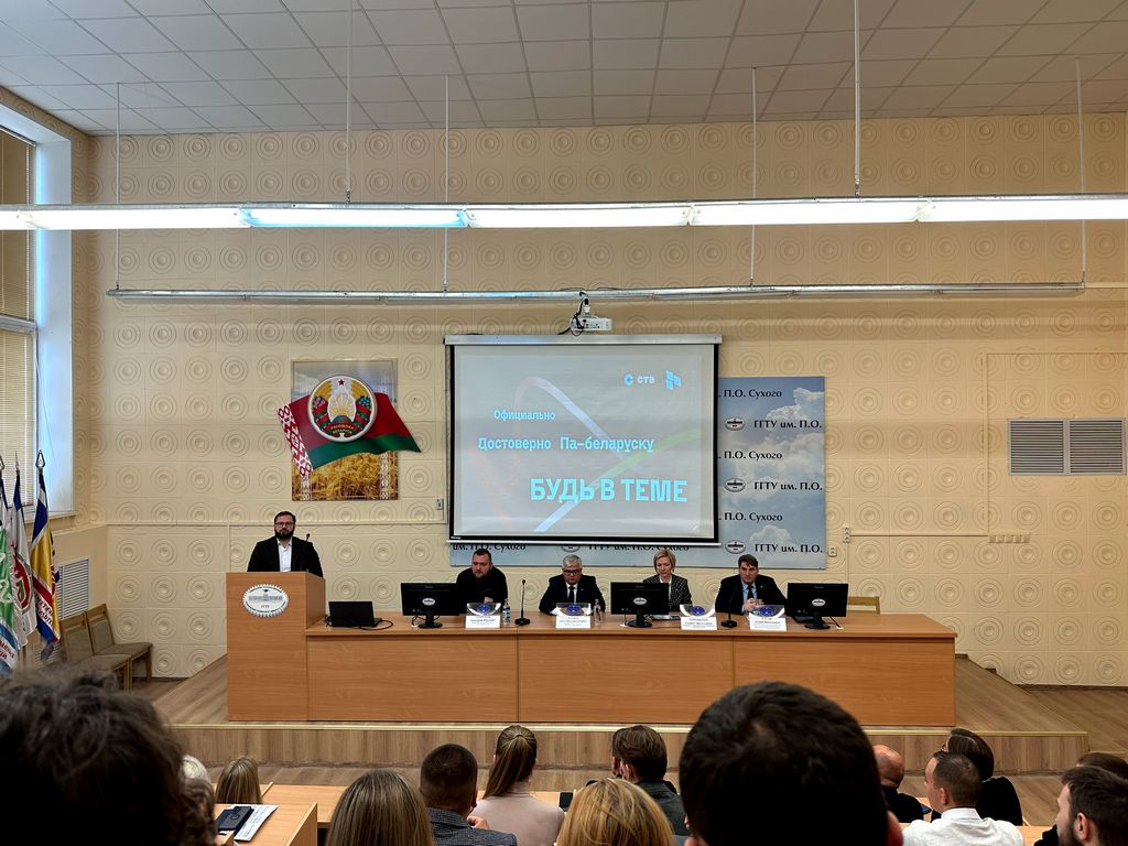 18 октября в Гомельском государственном техническом университете имени П.О. Сухого состоялась встреча студенческого актива высших учебных заведений г. Гомеля с белорусским телеведущим, журналистом и пропагандистом Григорием Азаренком «Достоверно. Па-беларуску. Будь в теме». В мероприятии приняли участие представили всех факультетов университета.