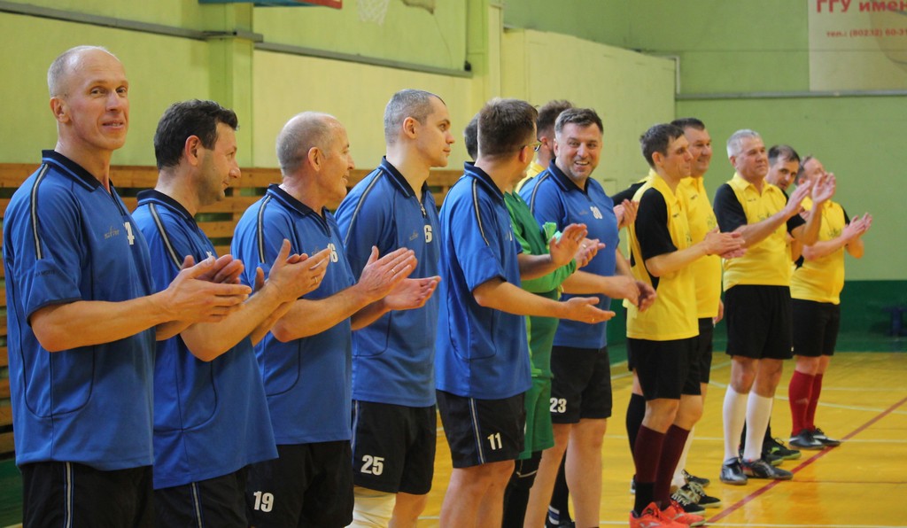 С приветственными словами и пожеланием спортивных побед к участникам соревнования обратился первый проректор Андрей Крук и председатель профсоюзной организации Сергей Азявчиков. Андрей Викторович отметил давние традиции, заложенные ещё Михаилом Васильевичем Селькиным – почетным профессором ГГУ, который более 40 лет являлся капитаном футбольной команды преподавателей университета.