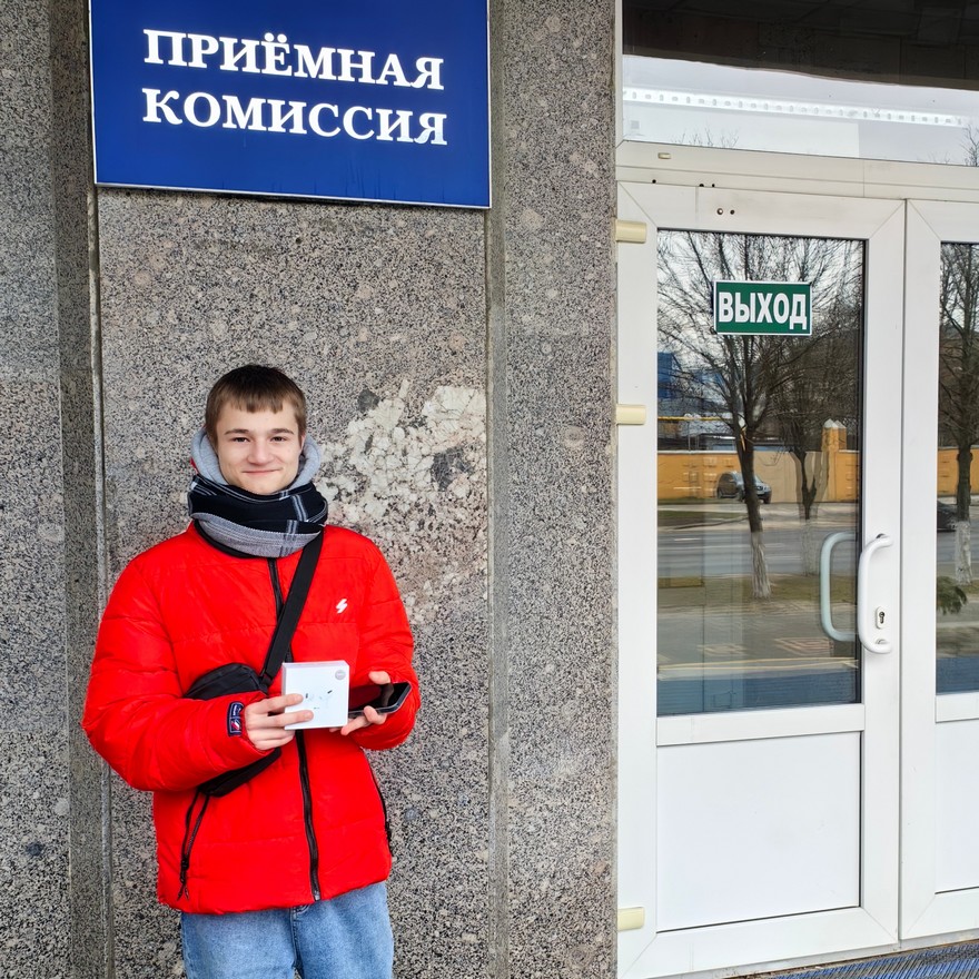 В декабре в ГГУ имени Франциска Скорины завершился первый этап репетиционного тестирования. В нашем пункте тестирования на первом этапе было зарегистрировано 3616 учащихся. По уже сложившейся традиции среди участников РТ проведен розыгрыш ценного приза. На первом этапе таким призом стали беспроводные наушники Borofone BW02 Plus. Обладателем наушников стал ученик 10 класса ГУО «Гимназия № 36 г. Гомеля имени И. Мележа» Матвей Вынар. Матвей очень серьезно относится к поступлению и решил проверить свои знания по русскому языку уже в 10 классе. Матвей собирается стать преподавателем русского языка и литературы и будет поступать в ГГУ имени Франциска Скорины на специальность «Русская филология». Матвей собирается принять участие и во втором этапе репетиционного тестирования, который пройдет с 14 января по 25 февраля, считает, что тестирование – эффективный способ проверить свои знания перед ЦЭ и ЦТ. Напоминаем, что в этом году в тестовых материалах задания пятого уровня сложности. Регистрация уже открыта! Ознакомиться с инструкцией по регистрации можете по ссылке https://rikc.by/pretrialtesting/484-pamyatka-uchastniku-rt.html