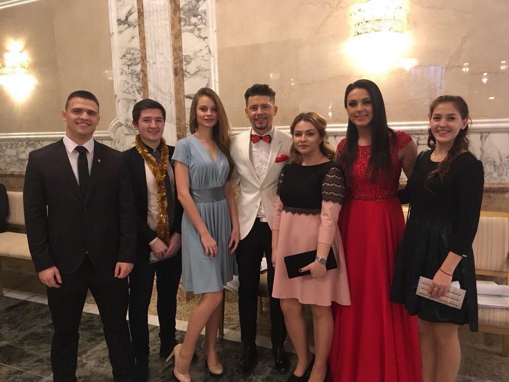 27 декабря во Дворце Независимости состоялся президентский новогодний бал. Во встрече с Главой государства приняли участие 250 молодых людей, из которых 190 – студенты вузов. ГГУ на мероприятии представили 6 студентов: Александра Синкевич и Рита Бакач (биологический факультет), Анастасия Тарасенко (экономический факультет), Юрий Серов (юридический факультет), Никита Малашков (филологический факультет) и Николай Литовкин (факультет физической культуры). Каждый из этих талантливых ребят не раз принимал участие в республиканских и международных конференциях и форумах, проявил себя в общественной деятельности университета.