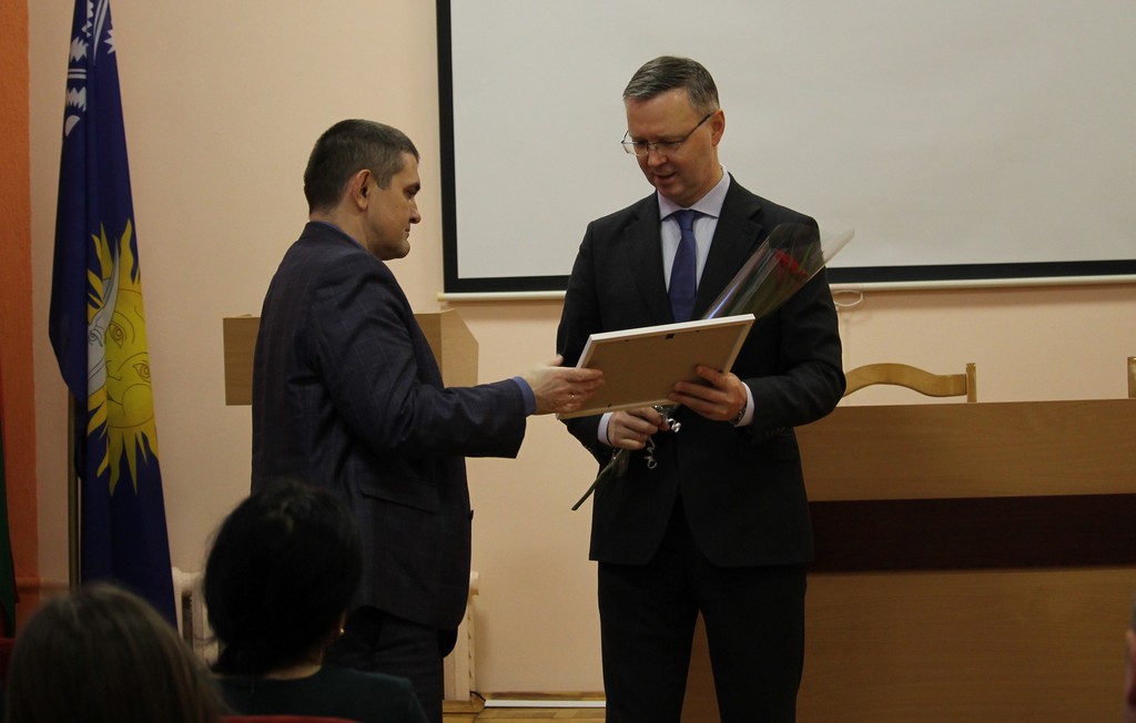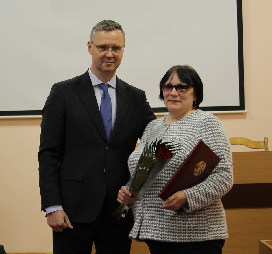 На торжественной ноте началось заседание ректората университета. Почетной грамотой Гомельской областной организации Белорусского профессионального союза работников образования и науки за высокий уровень развития социального партнерства, содействие профсоюзу в работе по защите социально-экономических прав и законных интересов членов профсоюза награжден проректор по учебной работе ГГУ имени Ф. Скорины Юрий Никитюк. Почетной грамотой университета за многолетний добросовестный труд награждена ведущий бухгалтер бухгалтерии Ина Шестакова.