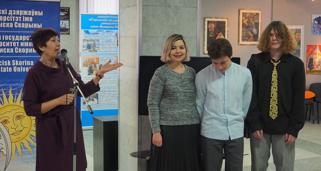 Открытие выставки началось с приветствия всех присутствующих в выставочном зале деканом юридического факультета Ириной Игоревной Эсмантович. В своей короткой речи она подчеркнула важность не только делового, но и творческого сотрудничества юридического факультета и факультета физики и информационных технологий. Ирина Игоревна вручила авторам экспозиций М. В. Тимошенко и Э. Д. Зинкевич благодарности ректората за организацию персональных выставок и популяризацию их творчества. Церемония награждения экспонентов стала доброй традицией университета.