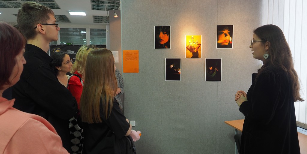 В экспозиции ««Искусство владеть светом» представлены художественные фотографии Эвелины Зинкевич, студентки группы Ф-43п факультета физики и информационных технологий. Экспонируемые на стендах фотоработы сгруппированы в серии – в соответствии с тем, какие оптические приёмы использованы для освещения фотомоделей при фотосъемке. В результате сочетания законов оптики и искусства фотографа достигается удивительный зрительный эффект. В ходе экскурсии по экспозиции фотовыставки Эвелина достаточно подробно рассказала о приемах и условиях освещения. Чтобы они были понятны и зрителю, самостоятельно осматривающему экспозицию, краткая информация об этом приведена в тексте этикеток, дополняющих каждую серию фотографий. Познакомиться с другими работами автора можно, считывая с этикетки   OR- код каждой серии фотографий.