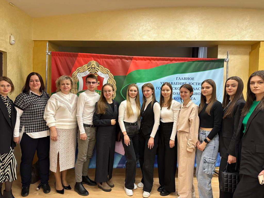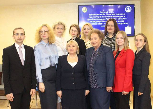 13.03.2024 года, в канун Дня Конституции Республики Беларусь, декан юридического факультета И.И. Эсмантович приняла участие и выступила в качестве эксперта на круглом столе на тему «Конституция как правовая опора преемственности и развития белорусского государства», организованном региональным отделением Союза юристов. Студенты юридического факультета также были приглашены в качестве слушателей.