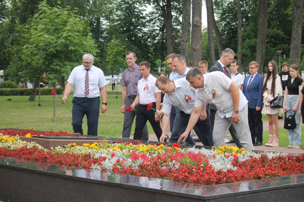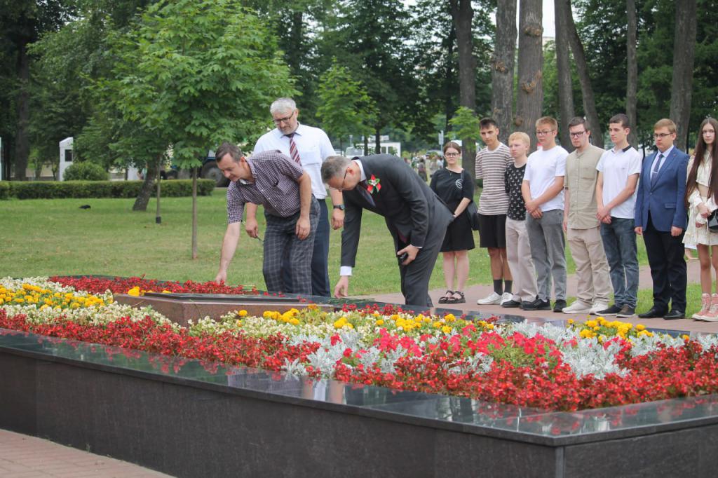 Руководство, сотрудники, преподаватели и студенты ГГУ возложили цветы и венки к братской могиле героев-подпольщиков и партизан, приняли участие в торжественном шествии, присоединились к республиканской акции "Споем гимн вместе!".