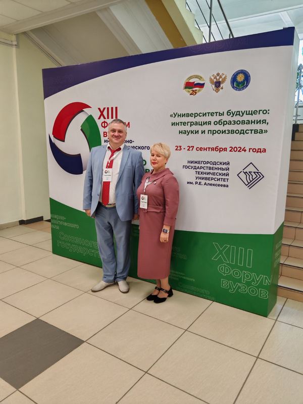 24 сентября в Нижнем Новгороде торжественно открылся XIII Форум вузов инженерно-технологического профиля Союзного государства. Гомельский государственный университет имени Франциска Скорины на этом значимом событии представила делегация в составе кандидата технических наук, доцента кафедры радиофизики и электроники Алины Валентиновны Семченко и кандидата технических наук, начальника центра информационных технологий Александра Николаевича Купо.