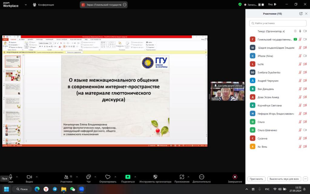 На пленарном заседании конференции от нашего университета свои доклады представили профессор кафедры русского, общего и славянского языкознания В. И. Коваль («Пушкинские образы русалок и нимфа из оды Цао Чжи «Фея реки Ло») и заведующий кафедрой профессор Е. В. Ничипорчик («О языке межнационального общения в современном интернет-пространстве»).