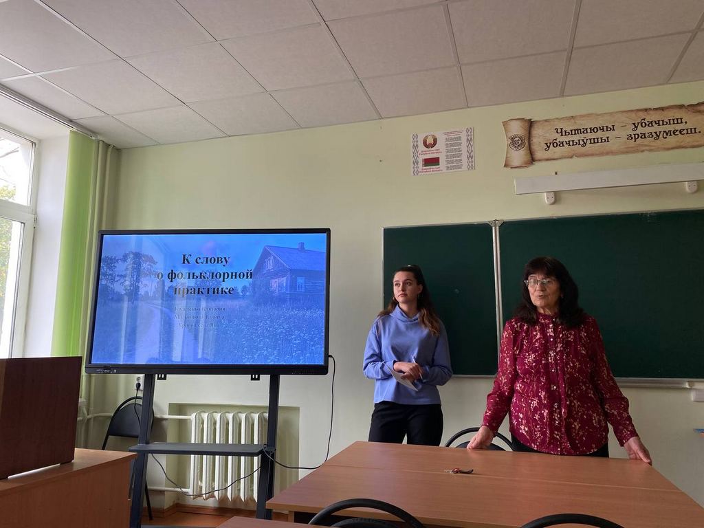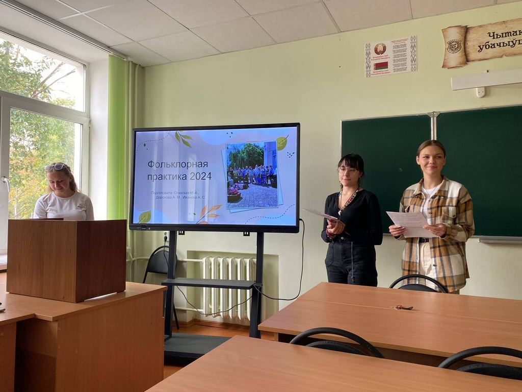 1 кастрычніка 2024 г. на філалагічным факультэце адбылася канферэнцыя, прысвечаная вынікам вучэбнай фальклорнай практыкі, якой кіравалі выкладчыкі кафедры рускай і сусветнай літаратуры прафесар В. С. Новак і дацэнт А. А. Кастрыца. У аўдыторыі сабраліся студэнты першага курса (груп БФ-11 і РФ-11), якіх таксама ўлетку 2025 г. чакаюць цікавыя сустрэчы з носьбітамі традыцыйнай духоўнай культуры.