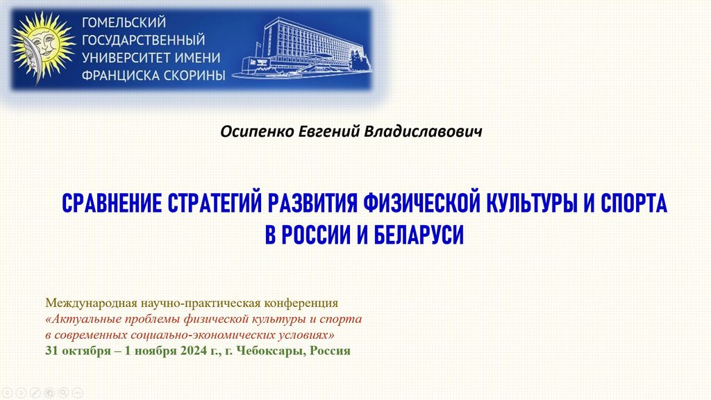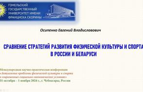 Профессорско-преподавательский состав и студенты факультета физической культуры УО «ГГУ имени Ф. Скорины» приняли активное участие в дискуссиях, обогатив их своими идеями и предложениями. С научным докладом «Сравнение стратегий развития физической культуры и спорта в России и Беларуси» выступил заведующий кафедрой теории и методики физической культуры, кандидат педагогических наук, доцент Евгений Осипенко. В своем докладе он проанализировал ключевые подходы и различия в развитии физической культуры и спорта в двух странах, подчеркнув важность обмена опытом и сотрудничества для улучшения спортивных программ и инициатив.