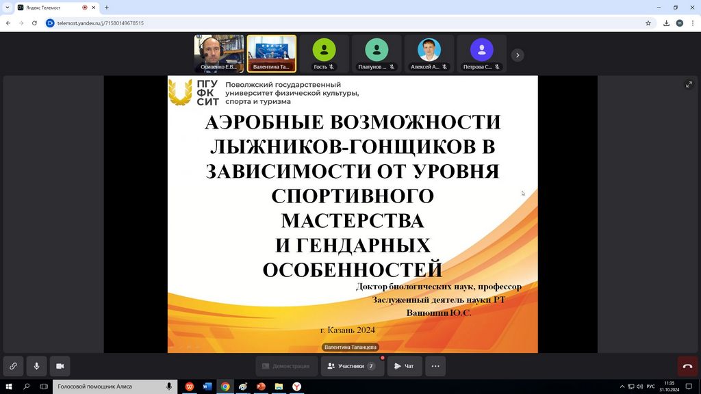 – Юрий Ванюшин (Поволжский государственный университет физической культуры, спорта и туризма) – «Аэробные возможности лыжников-гонщиков в зависимости от уровня спортивного мастерства и гендерных особенностей».