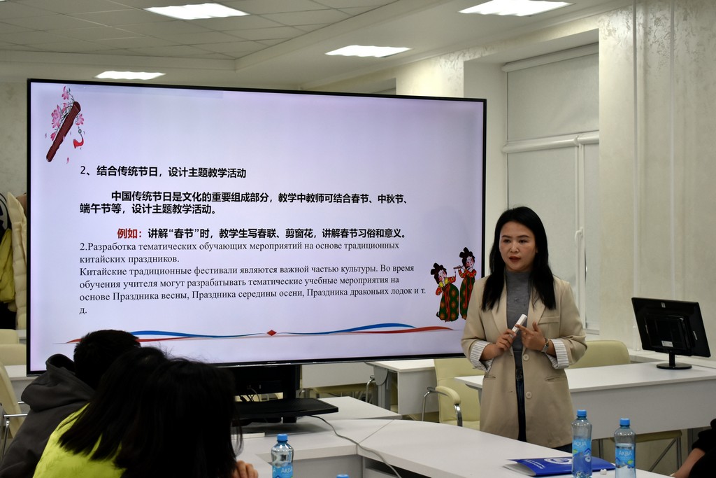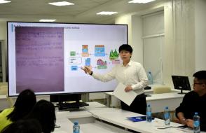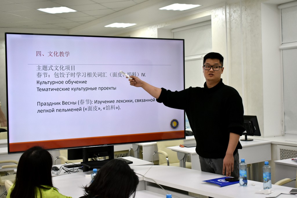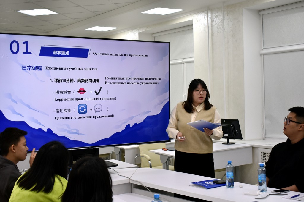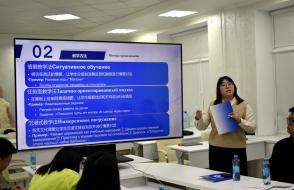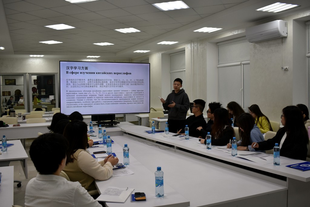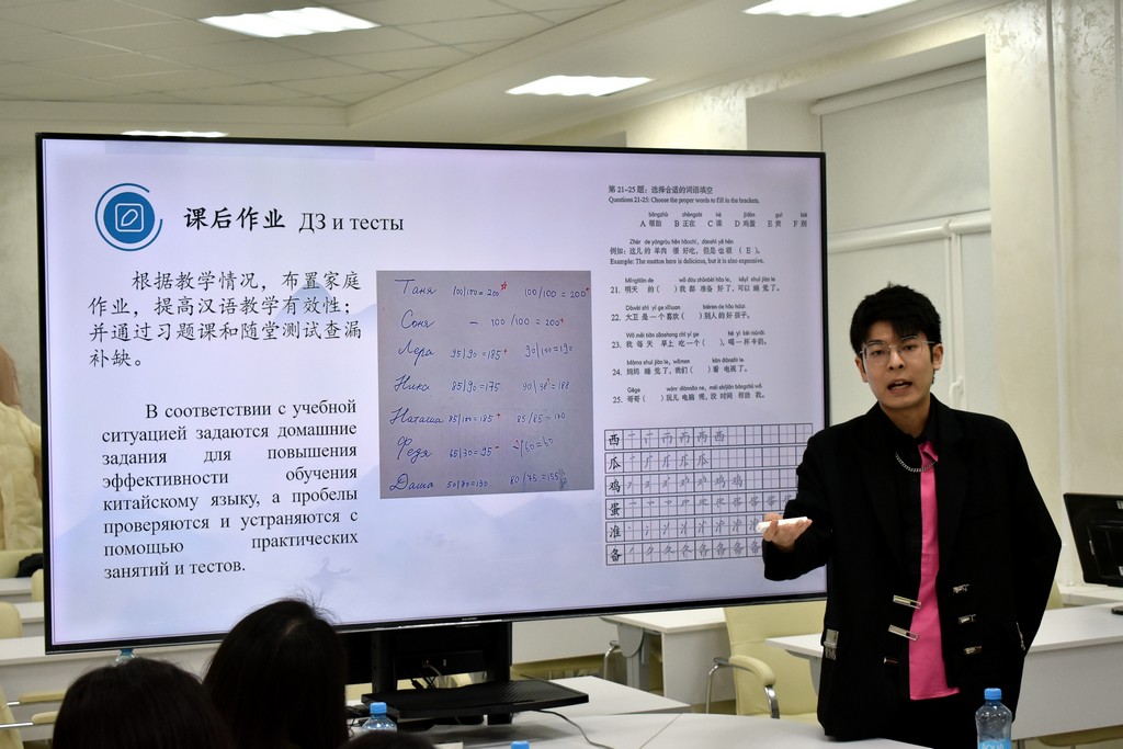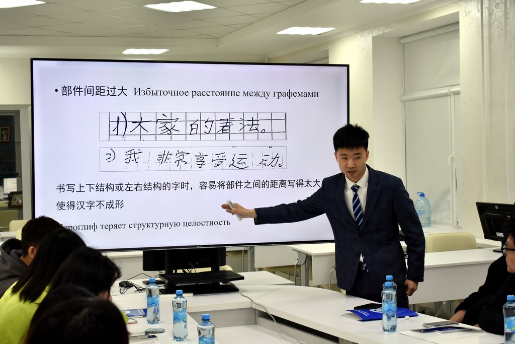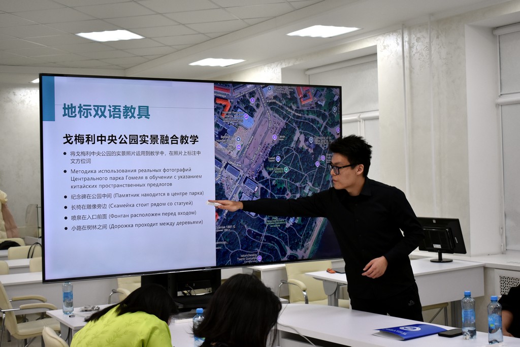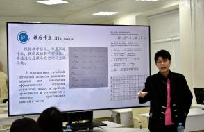 Каждый из преподавателей китайского языка в форме презентации представил своё видение структуры и содержания занятий, использование традиционных методик и современных технологий. Так, Дэн Чжичень поделился своим опытом преподавания китайского языка не только в Институте Конфуция, но и в гимназии N 46, обратив внимание на типичные ошибки учащихся в произношении слов и в написании иероглифов. Сунь Сяо обратила внимание участников семинара на важность изучения китайского языка в его связи с культурными традициями и литературой Китая. Сун Чжотао поделился своим опытом работы по преподаванию китайского языка в объединении "Белоруснефть", подчеркнув необходимость использования мультимедийных средств обучения, тестов и регулярной проверки домашних заданий. Темой выступления самого опытного преподавателя Института Конфуция - Чжан Шувэнь - стало изучение китайского языка через "погружение" в традиционную культуру, историю и географию Беларуси на основе поэтапной оценки деятельности учащихся. Большой интерес присутствующих вызвали выступления Ван Мэня, Яо Лидан, Ван Синь, Ван Цзыцзе и других преподавателей. На заседании семинара выступили также белорусские преподаватели китайского языка, работающие на филологическом факультете - Ангелина Аксенчикова-Бирюкова и Виолетта Белодед. Бурными аплодисментами отреагировали китайские преподаватели на выступление В.А. Белодед, которое она сделала на китайском языке.