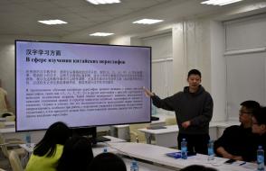В настоящее время слушателями курсов китайского языка при Институте Конфуция являются более 200 человек - школьники и гимназисты, студенты, представители разных профессий. Занятия с ними на постоянной основе проводят 14 преподавателей, граждан Китая. Естественно, что в таком случае возникает много вопросов чисто методического характера: каково должно быть содержание занятий, какими учебными пособиями нужно пользоваться, как должна учитываться разноуровневая подготовка учащихся, как в процессе занятий используются современные компьютерные технологии. Эти и многие другие вопросы рассматривались на методическом семинаре, проведенном 18 марта в Институте Конфуция. Выступившие при его открытии проректор по учебной работе Ю.В. Никитюк, директора Института Конфуция - А.В. Рогачев (с белорусской стороны) и Чжан Айцзюнь (с китайской стороны) - указали на важность постоянной методической работы преподавателей китайского языка, необходимость повышения своих знаний, умений и навыков.