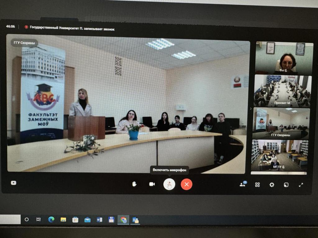 19 марта в стенах нашего университета состоялась традиционная Х Международная научно-практическая онлайн-конференция студентов и молодых ученых «Теория и практика обучения иностранным языкам: традиции и перспективы развития», учредителями которой выступают факультет романо-германских языков Государственного университета просвещения (г. Москва, Российская Федерация, https://guppros.ru/ru) и факультет иностранных языков Гомельского государственного университета имени Франциска Скорины (г. Гомель, Беларусь). Со стороны Российской Федерации в число участников вошли студенты, магистранты и аспиранты Государственного университета просвещения, Московского государственного лингвистического университета и Российского государственного педагогического университета имени А. И. Герцена. Беларусь была представлена учащимися Речицкого государственного педагогического колледжа, студентами и магистрантами Гомельского государственного университета имени Франциска Скорины и Минского государственного лингвистического университета. В этом году в центре внимания оказались такие вопросы, как использование инновационных педагогических технологий в онлайн-обучении, дидактический потенциал когнитивной визуализации в обучении чтению на иностранном языке, лингводидактический потенциал рекламных видеороликов в обучении английскому языку, формирование социокультурной компетенции у студентов лингвистического вуза с помощью компьютерных игр на китайском языке, моделирование средств формирования интеллектуально-познавательной грамотности, методы и приемы работы с песней, роль научно-практических конференций в активизации исследовательской деятельности студентов-будущих учителей иностранного языка, междисциплинарность научно-педагогического текста на иностранном языке. Все поставленные задачи были решены, и цель конференции была достигнута. Особую благодарность мы выражаем кандидату филологических наук, доценту, декану факультета романо-германских языков Веронике Петровне Шабановой; доктору педагогических наук, профессору, профессору кафедры лингводидактики Наталье Дмитриевне Гальсковой; кандидату педагогических наук, доценту, заведующему кафедрой методики преподавания иностранных языков Орешковой Надежде Леонидовне за четкую и слаженную работу по организации и проведению конференции, за оперативность решения вопросов, а также за высокий уровень профессионализма профессорско-преподавательского состава факультета. Мы верим в сохранение сложившихся деловых и дружеских отношений, надеемся на дальнейшее взаимовыгодное сотрудничество. До новых встреч для обсуждения новых, интересных научных идей!